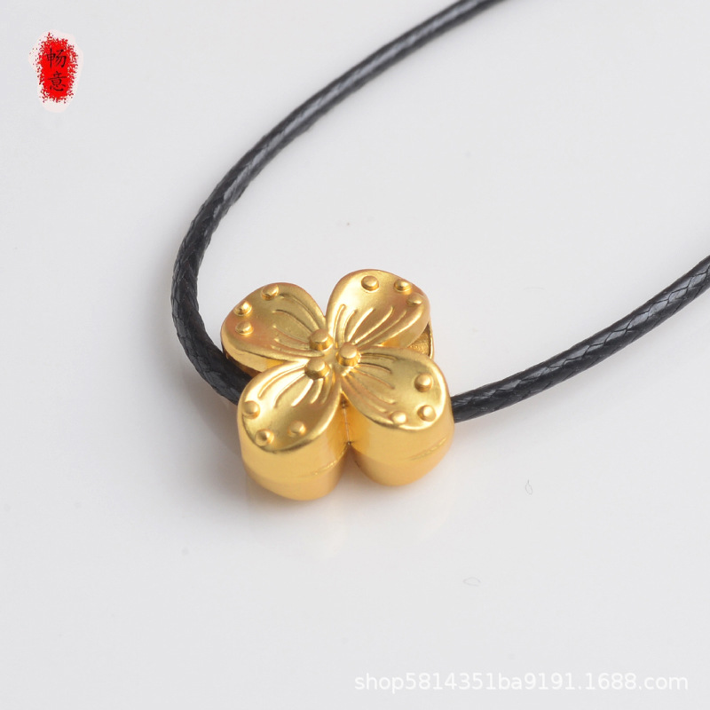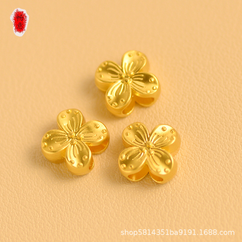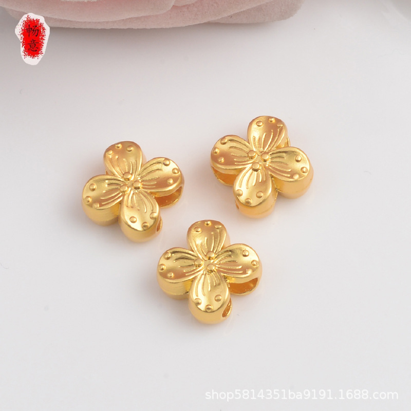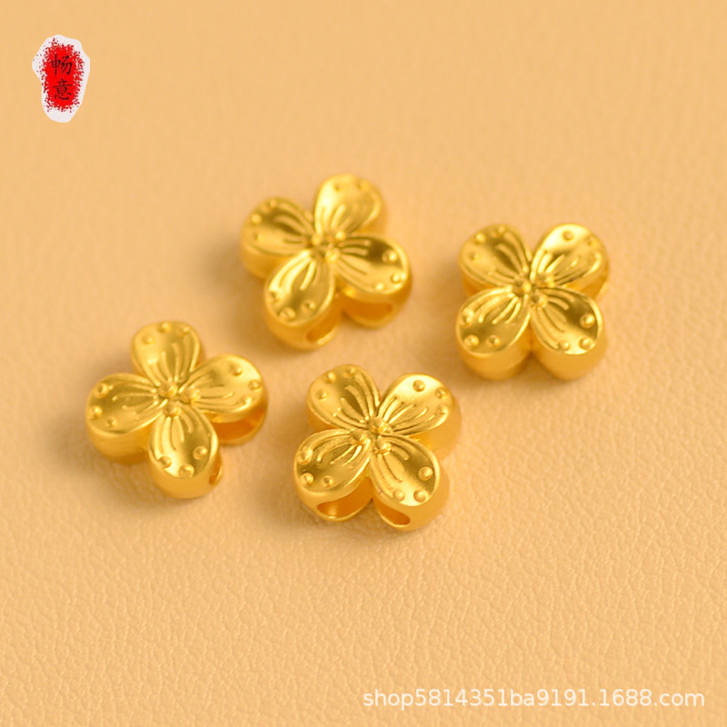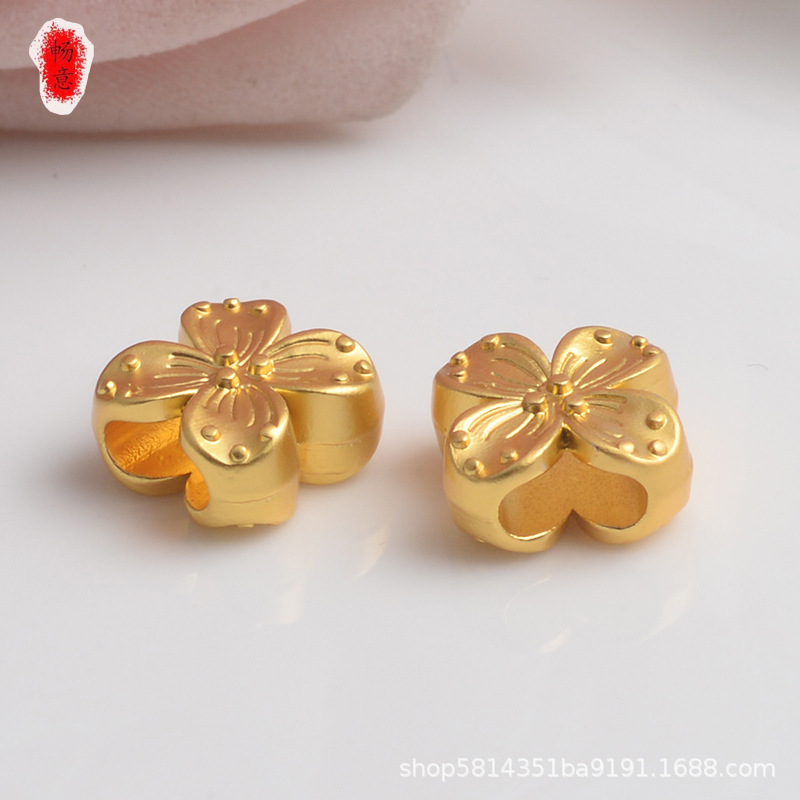 久不掉色厂家直销高档沙金diy手作配件双面四叶草花朵吊坠隔珠串