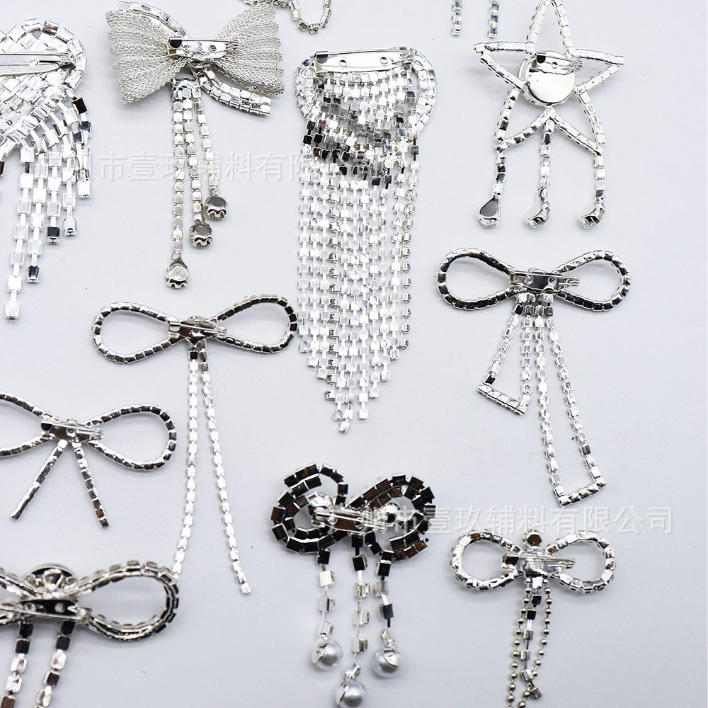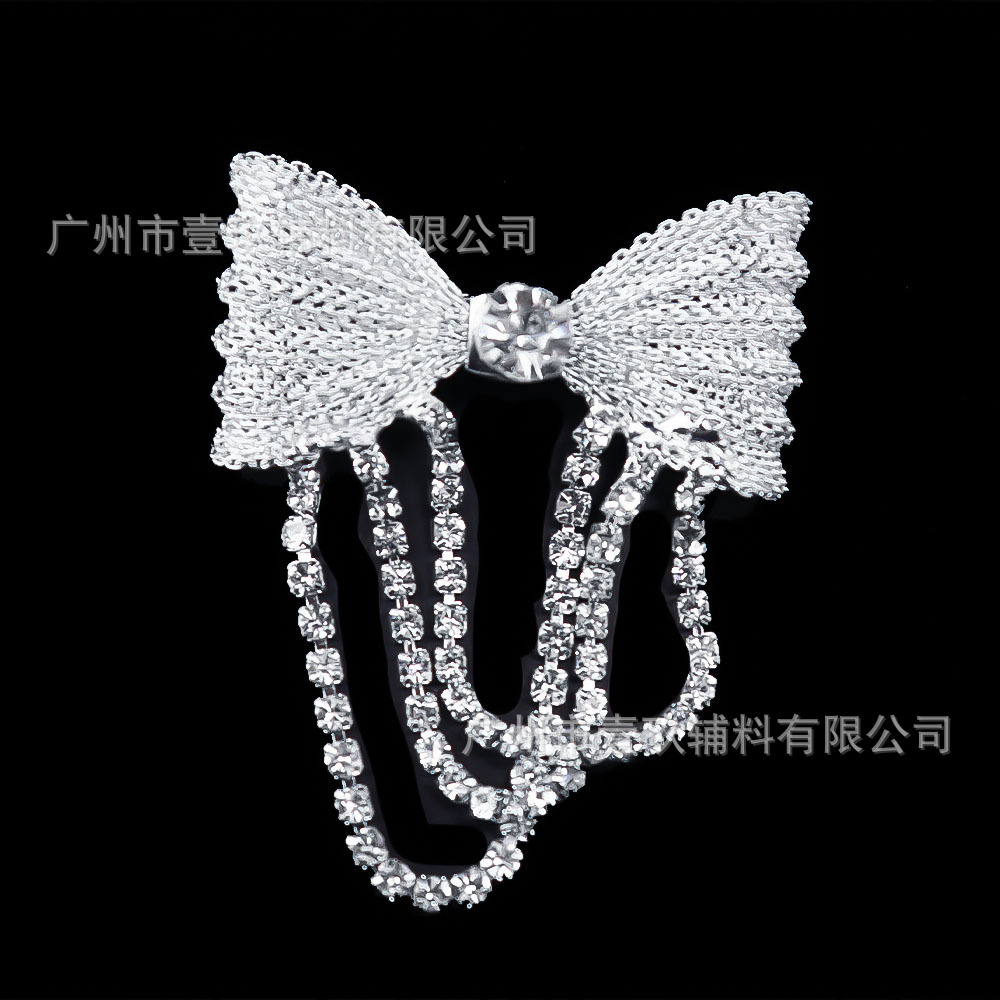 蝴蝶结水钻胸针高级水晶胸花DIY手工电镀女包服装饰品辅料配件