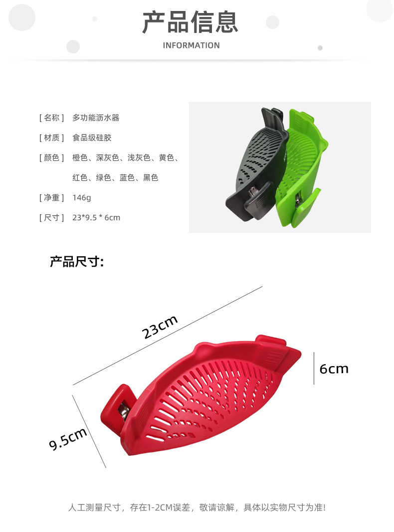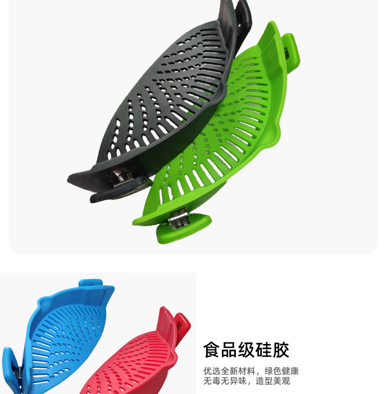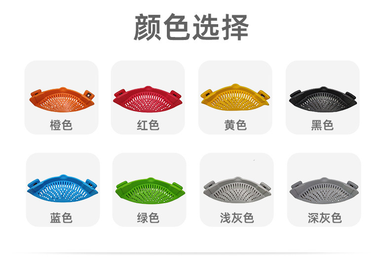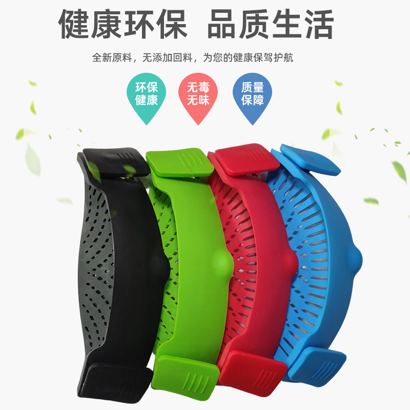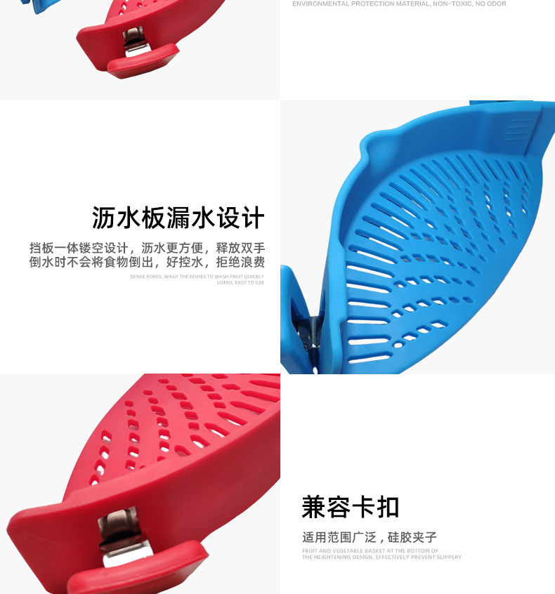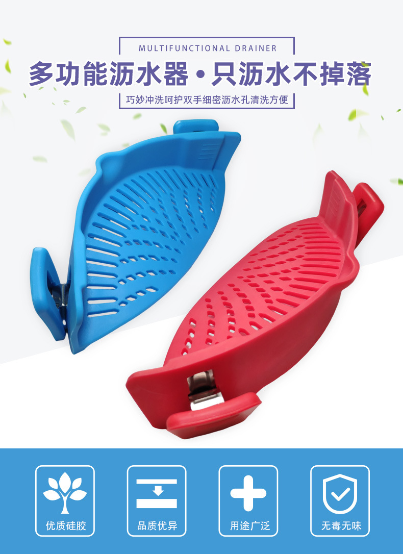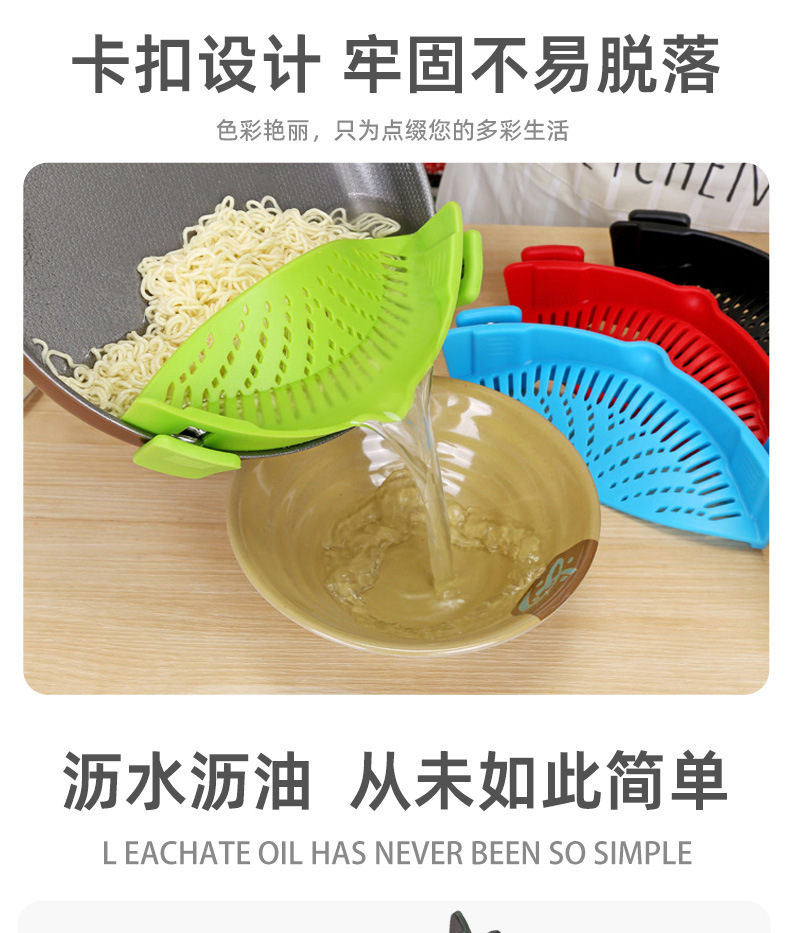 爆款现货厨房工具 水果夹紧沥水篮 面条过滤防洒漏锅边硅胶沥水器