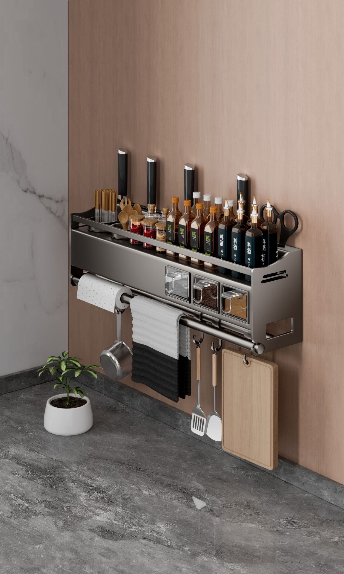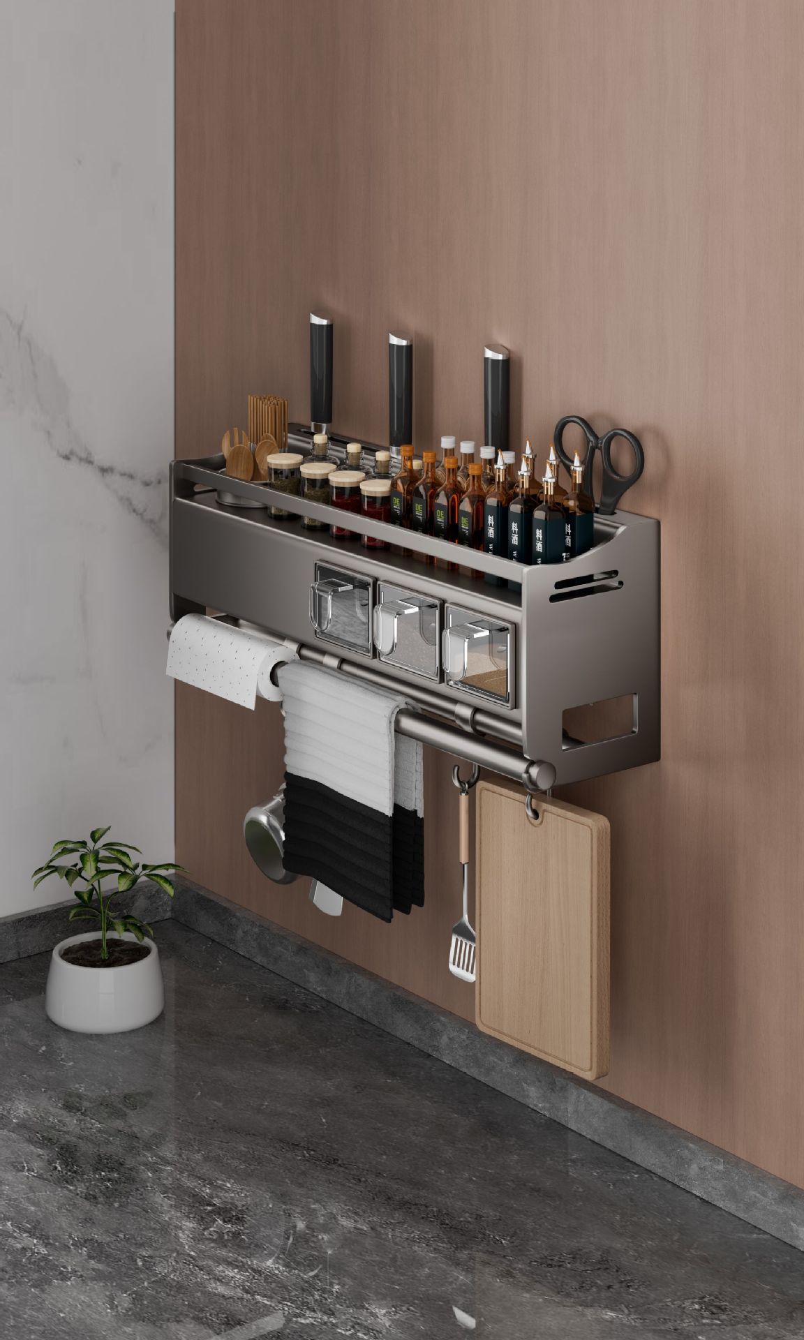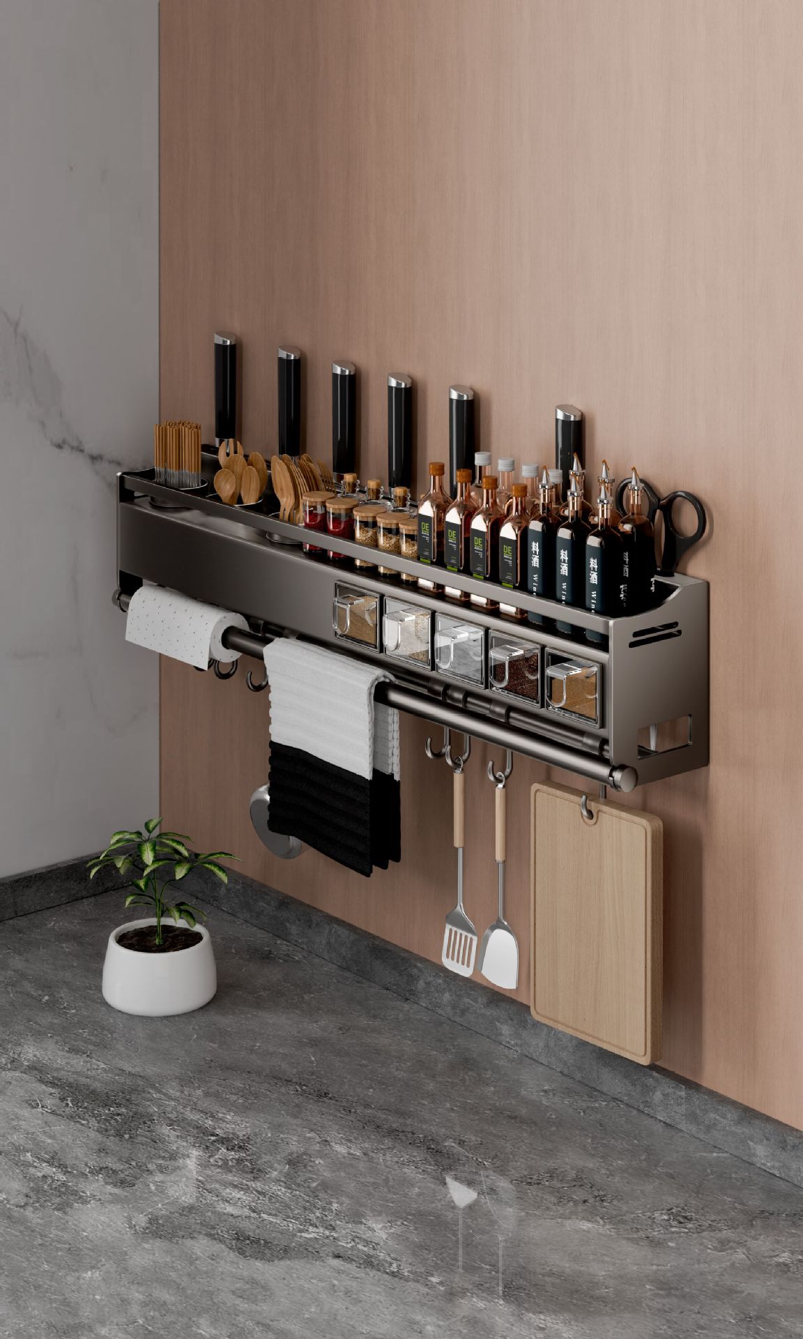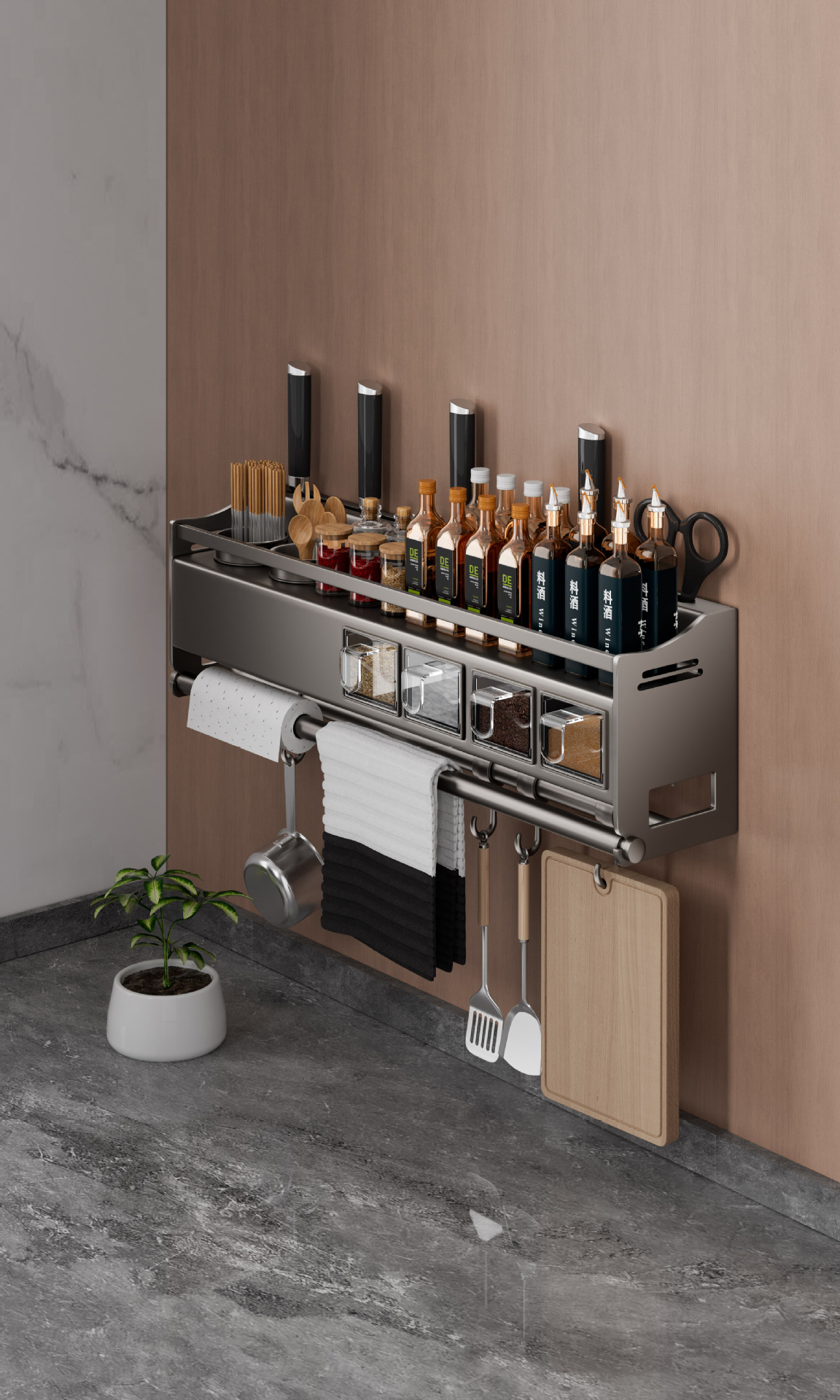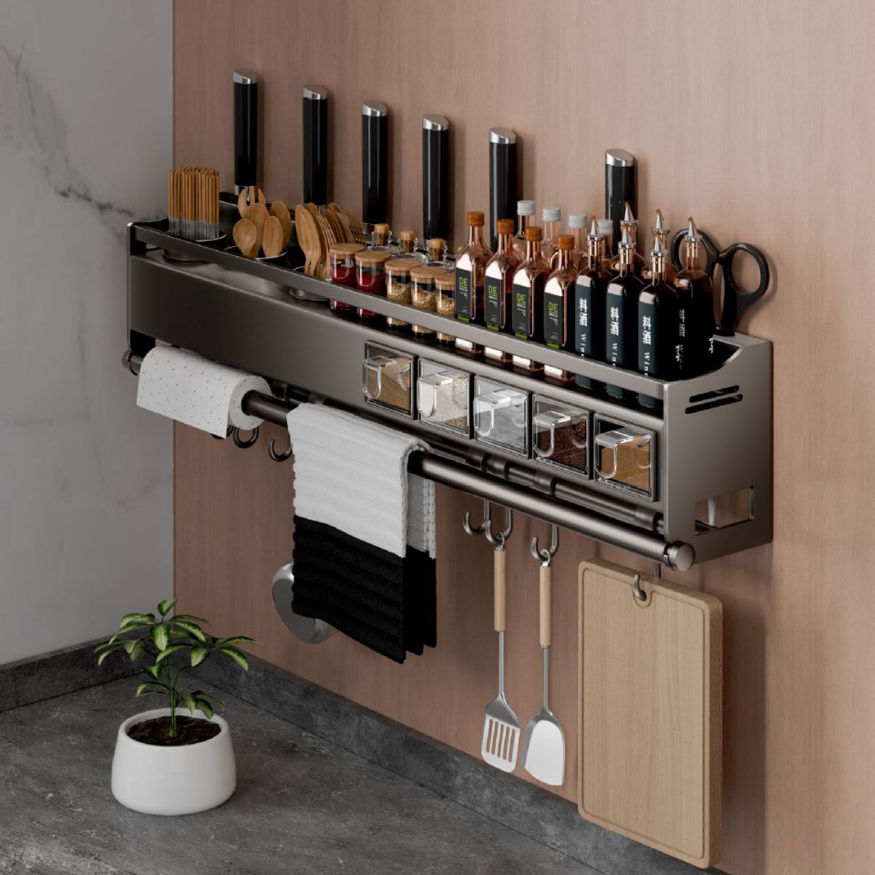 厨房调味料品多功能置物架墙上免打孔刀架筷子一体家用壁挂收纳架