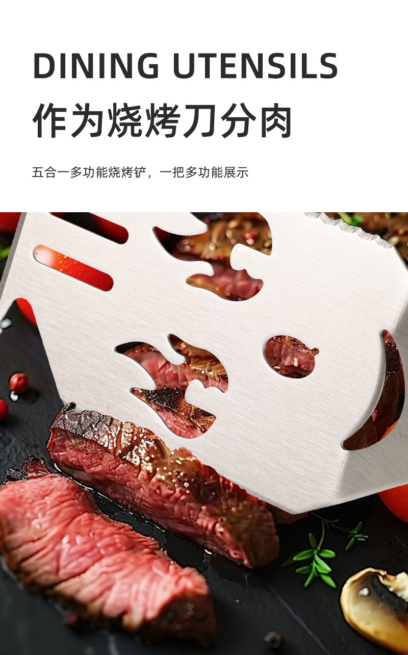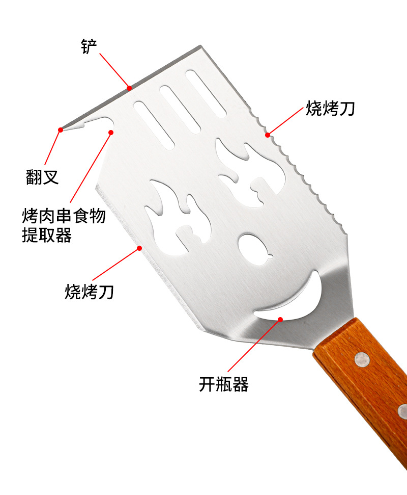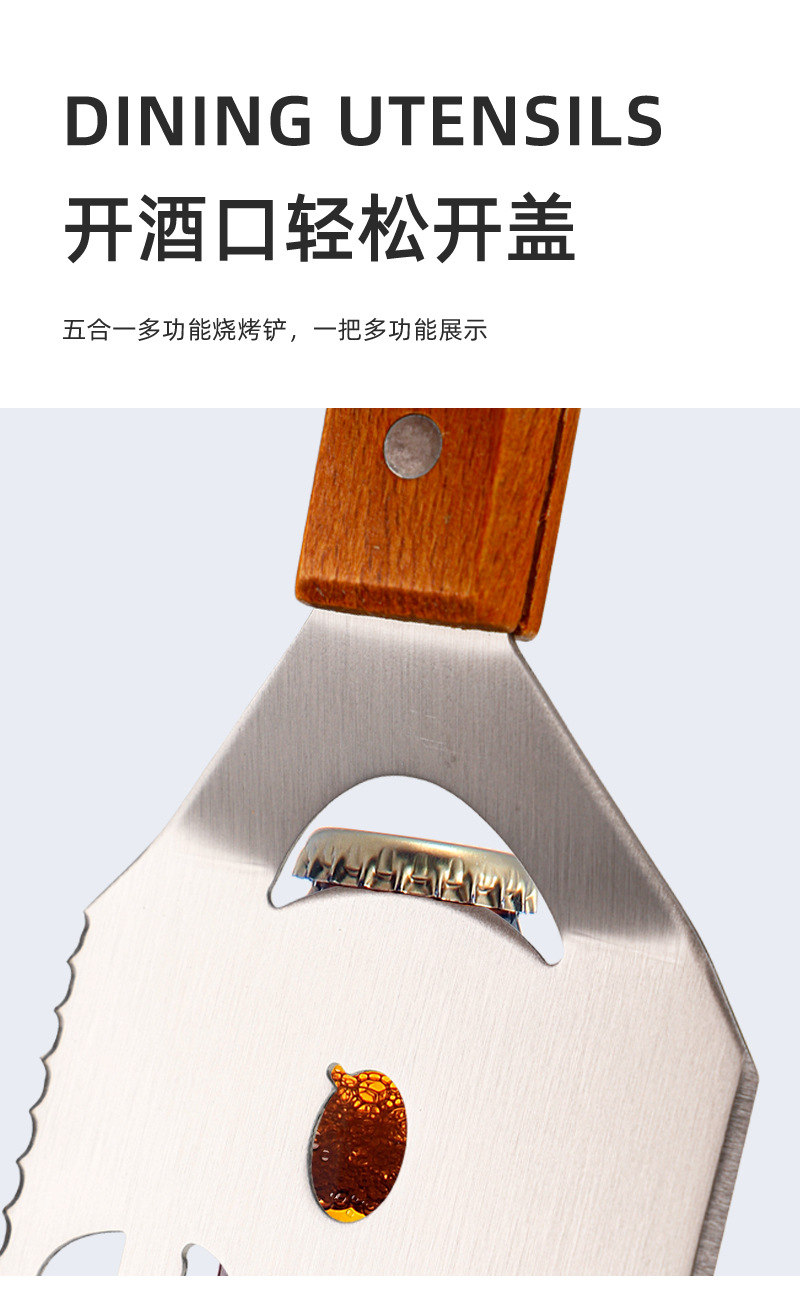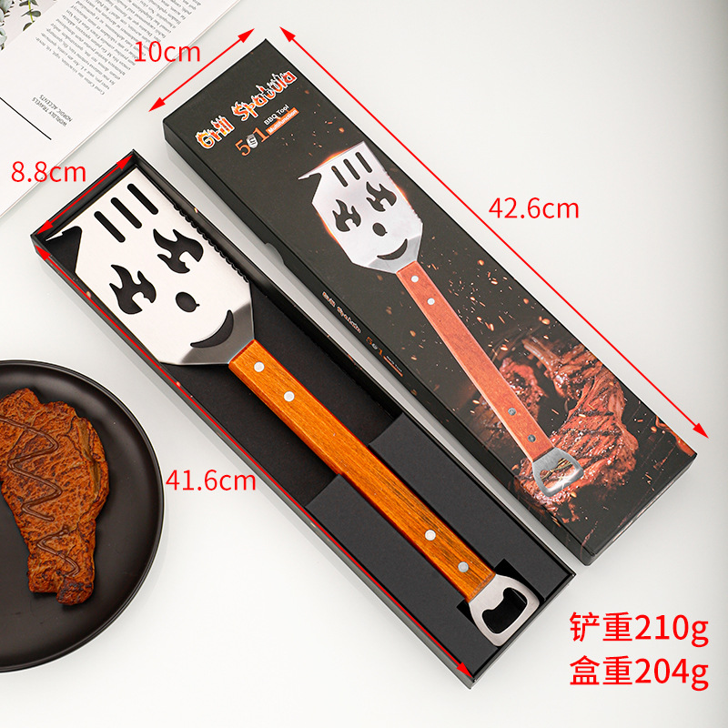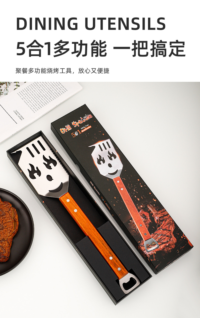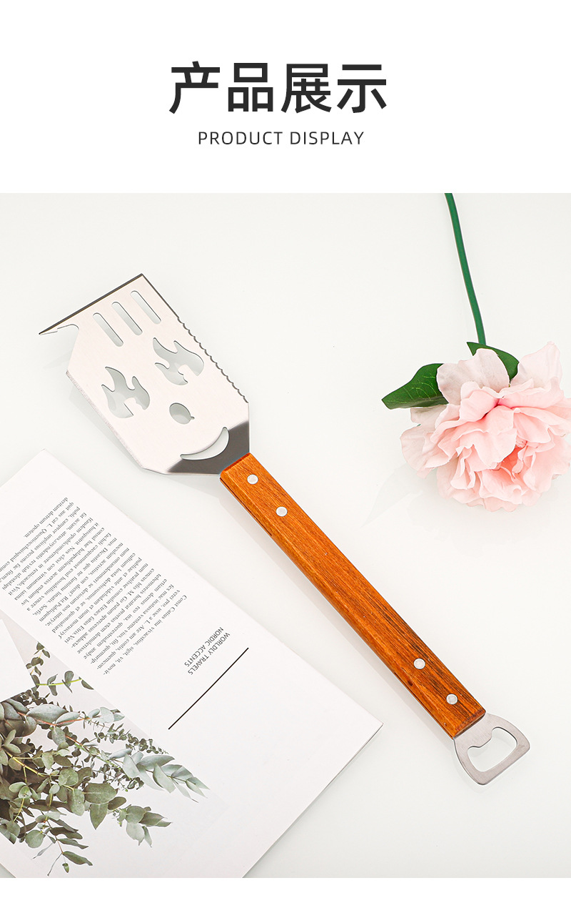 亚马逊户外厨房煎铲漏铲BBQ烧烤工具配件 啤酒开瓶器多功能烧烤铲