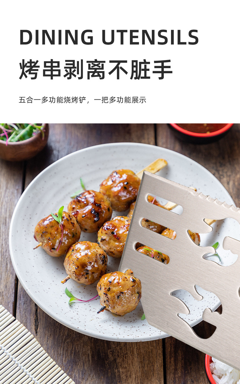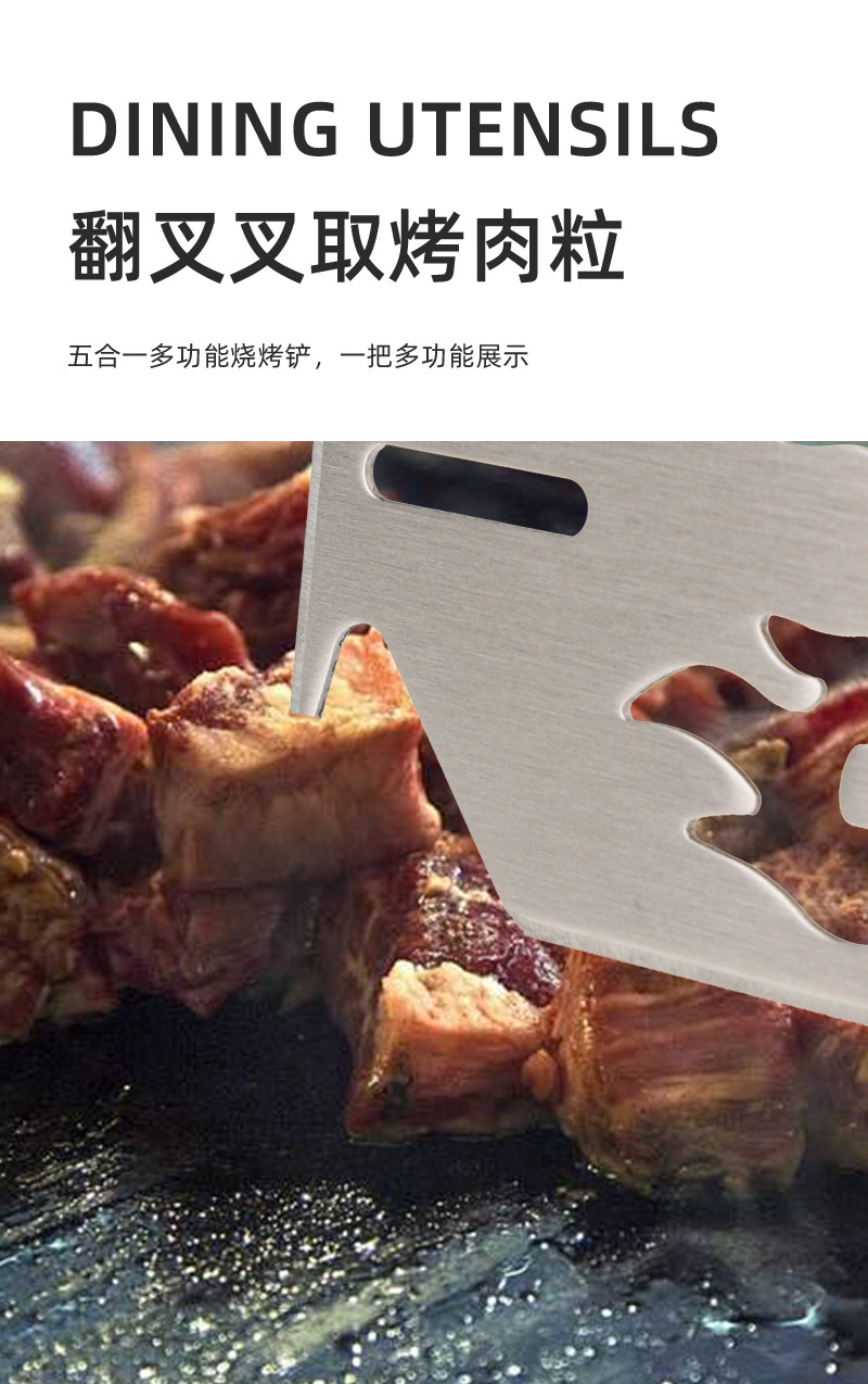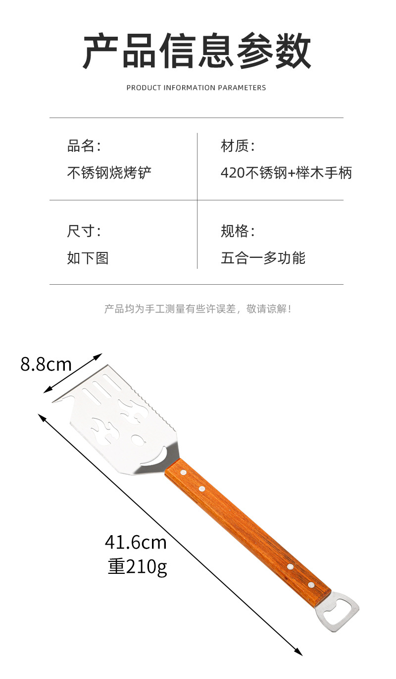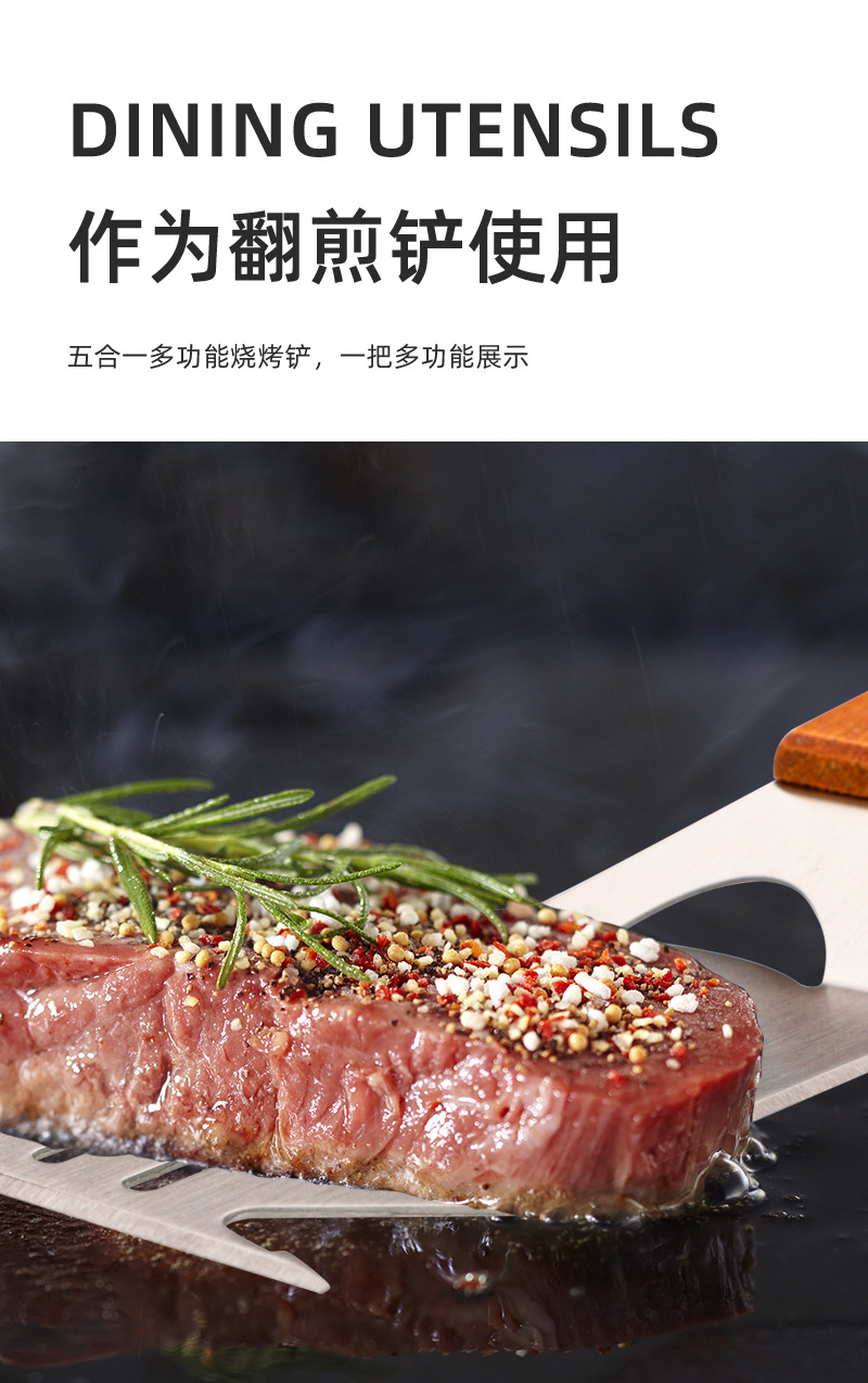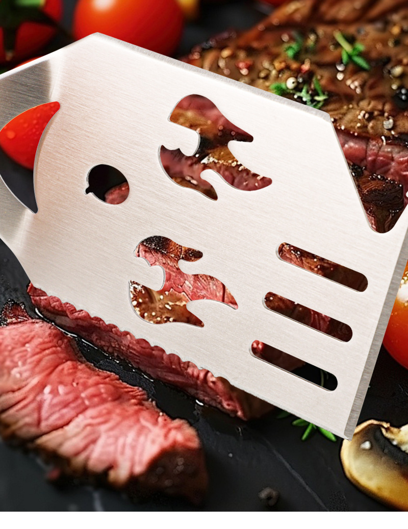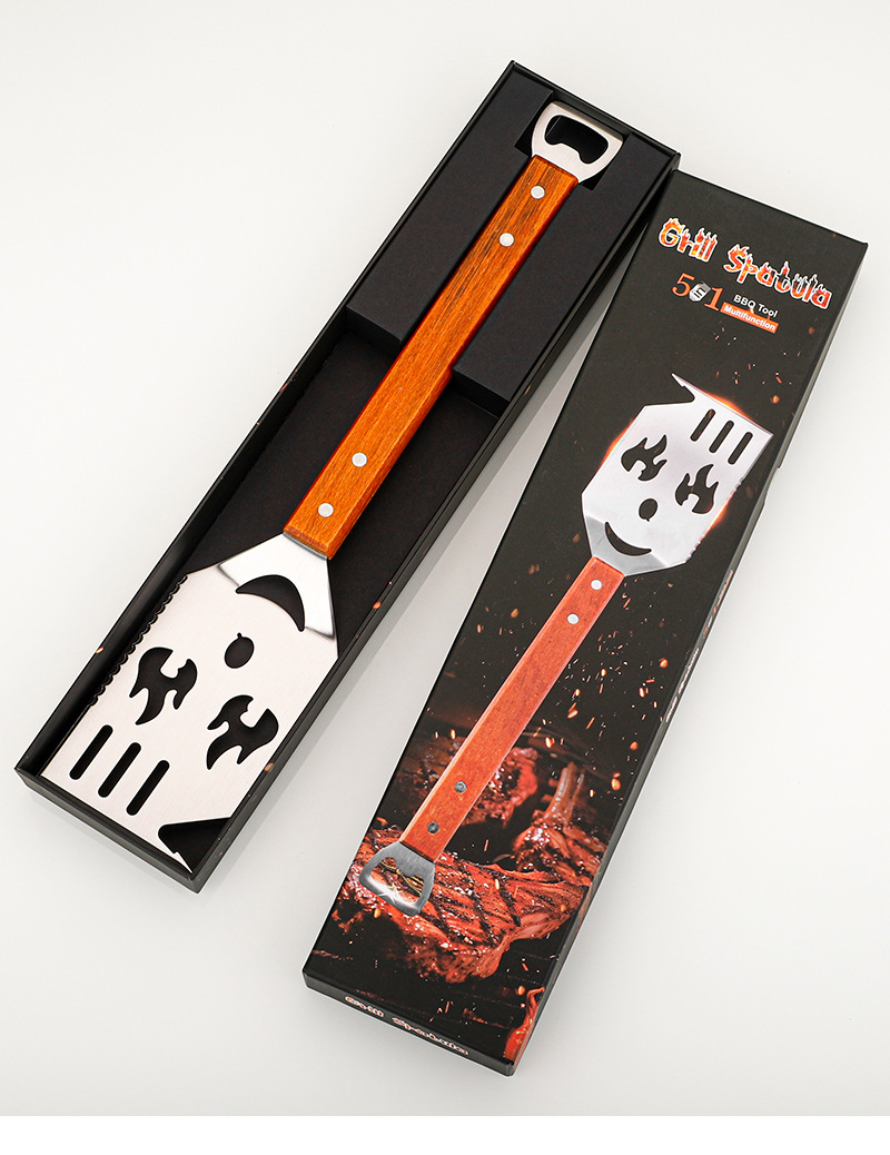 亚马逊户外厨房煎铲漏铲BBQ烧烤工具配件 啤酒开瓶器多功能烧烤铲