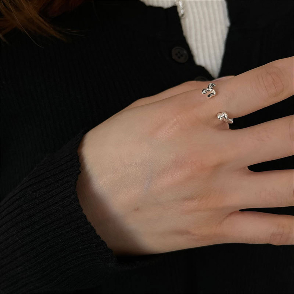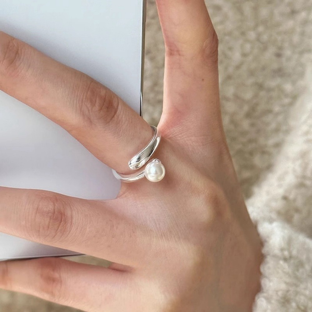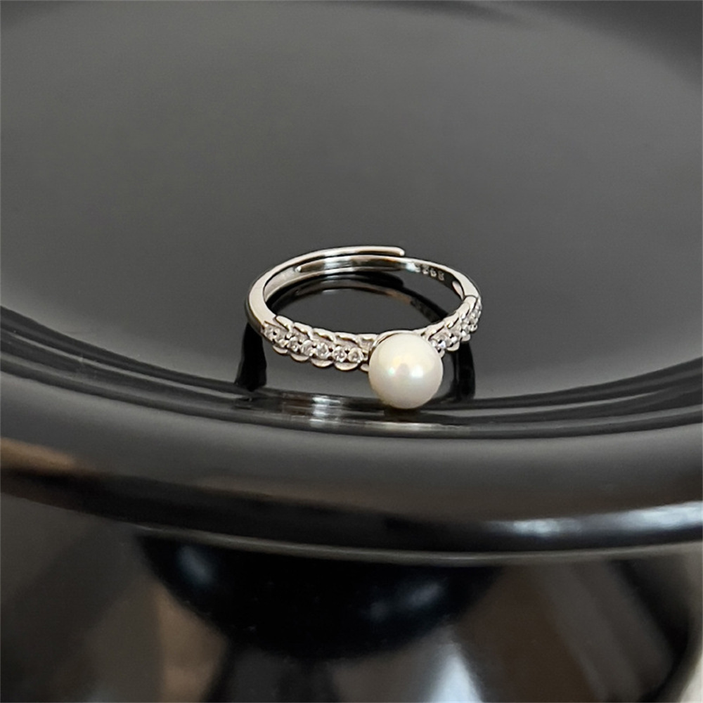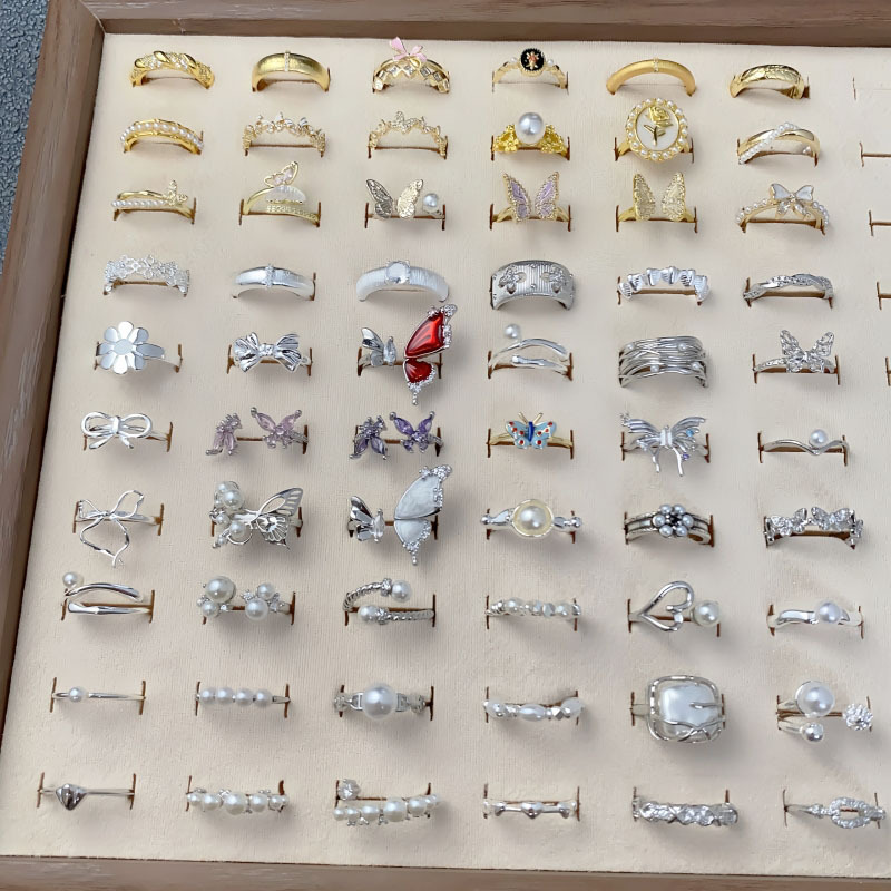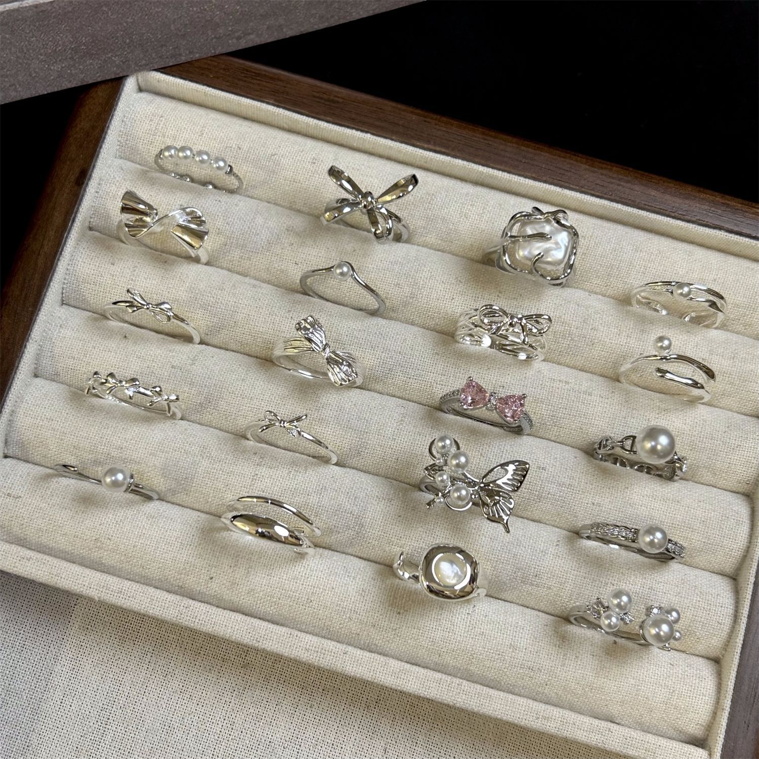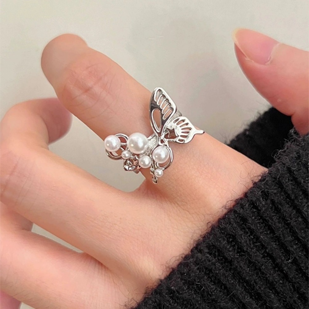 蝴蝶珍珠戒指女S925纯银小众轻奢高级感指环ins风百搭开口食指戒