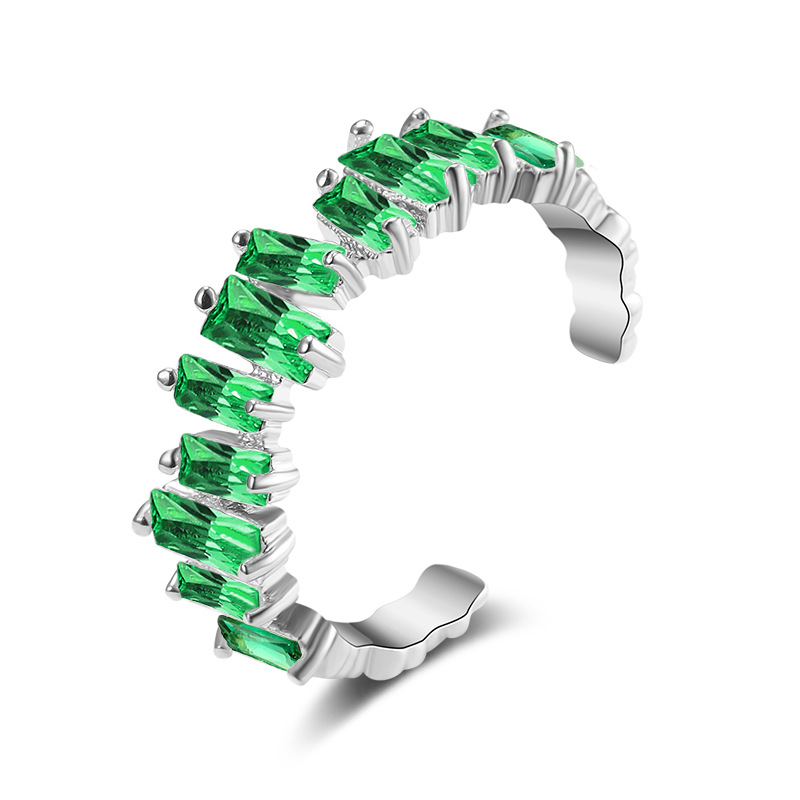 UILZ 欧美跨境热销彩色开口戒指时尚个性梯形不规则AAA锆石指环女