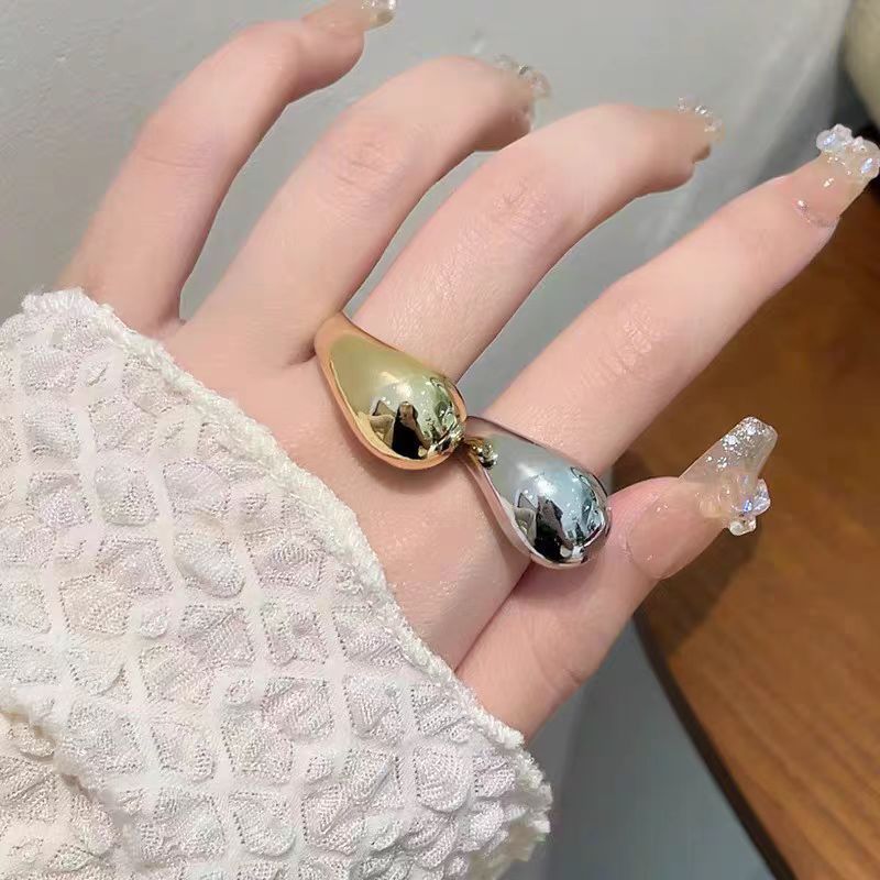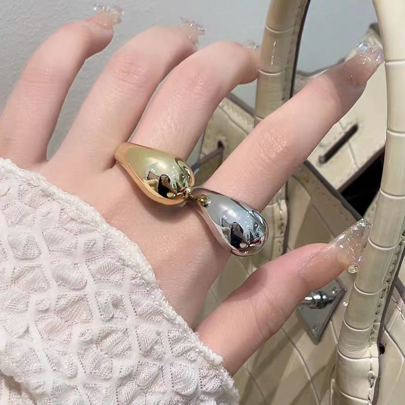简约水滴戒指女几何光面气质百搭ins风复古小众时尚个性开口指环