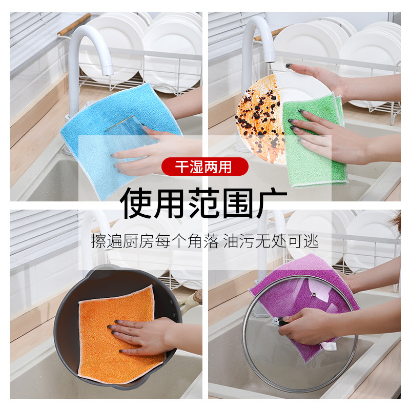 厂家批发双层加厚竹纤维洗碗巾厨房家务清洁抹布不易沾油洗碗布