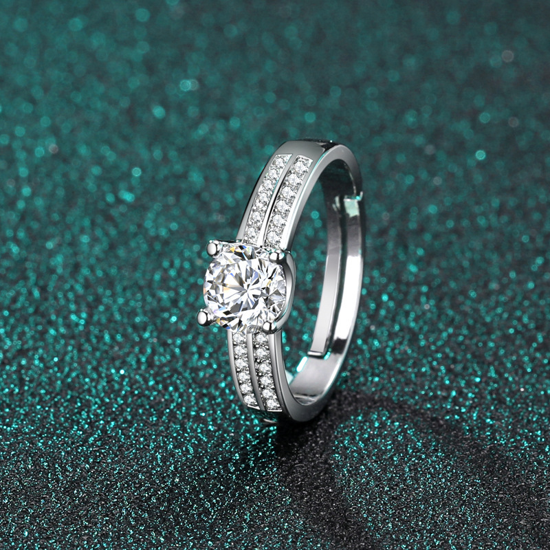 白铜 莫桑钻抖音网红直播一克拉三生三世开口戒指 时尚六爪指环