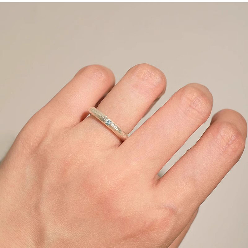 韩版拉丝海蓝宝戒指女简约风尾戒时尚小众设计百搭高级感食指戒潮