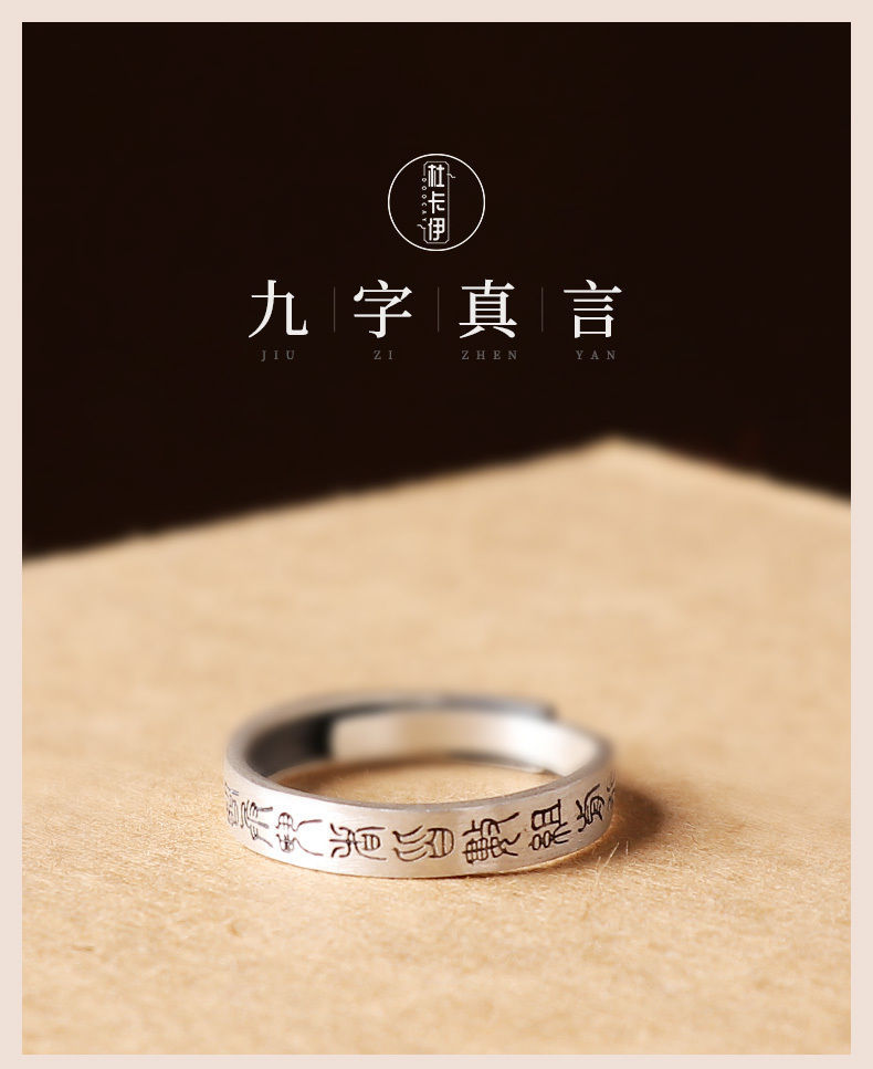道家九字真言戒指男女款镀银小众设计复古民族风开口指环国潮国风