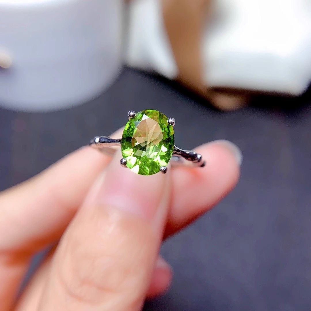 【绿野仙踪】S925纯银镶天然橄榄石戒指主石小清新橄榄绿个性女款