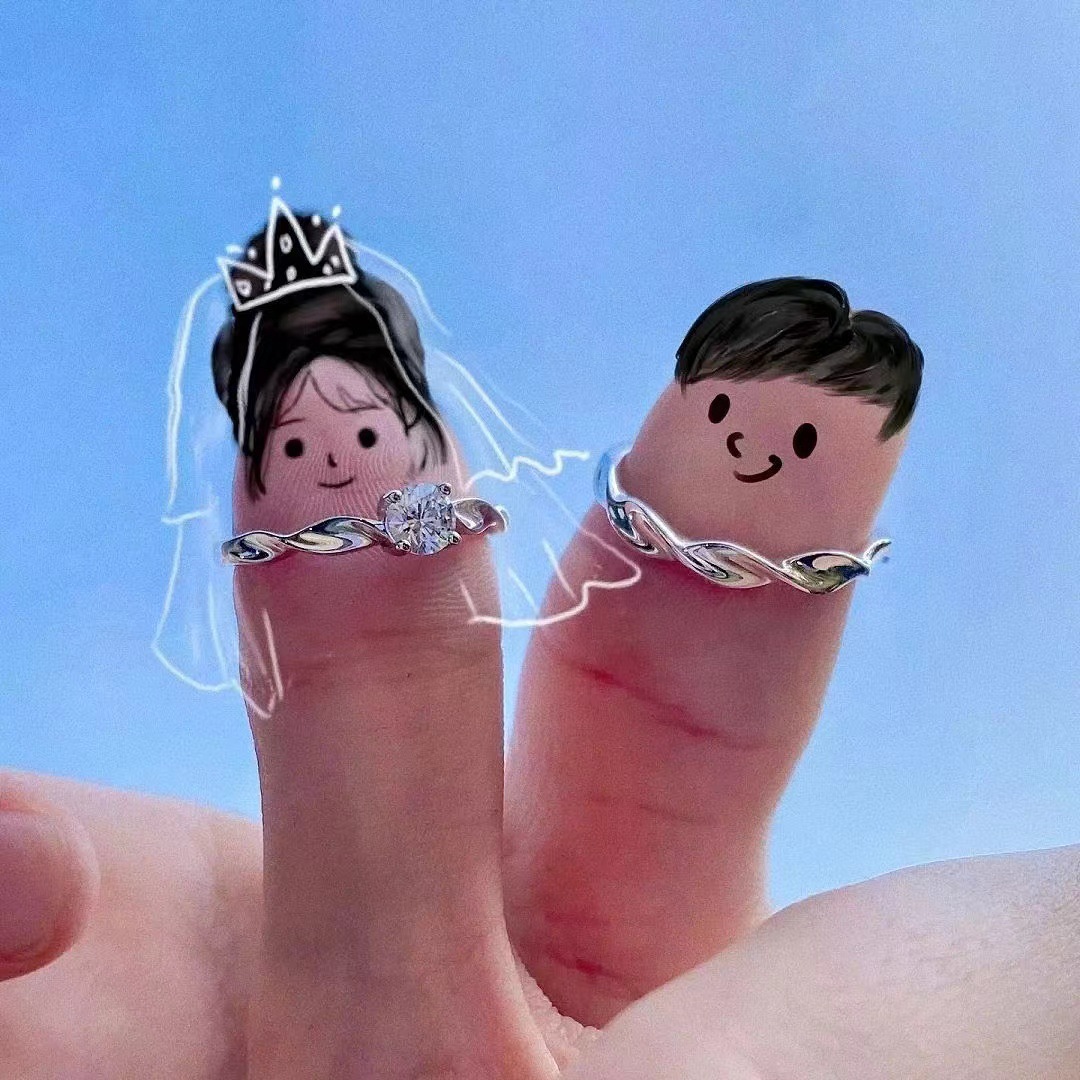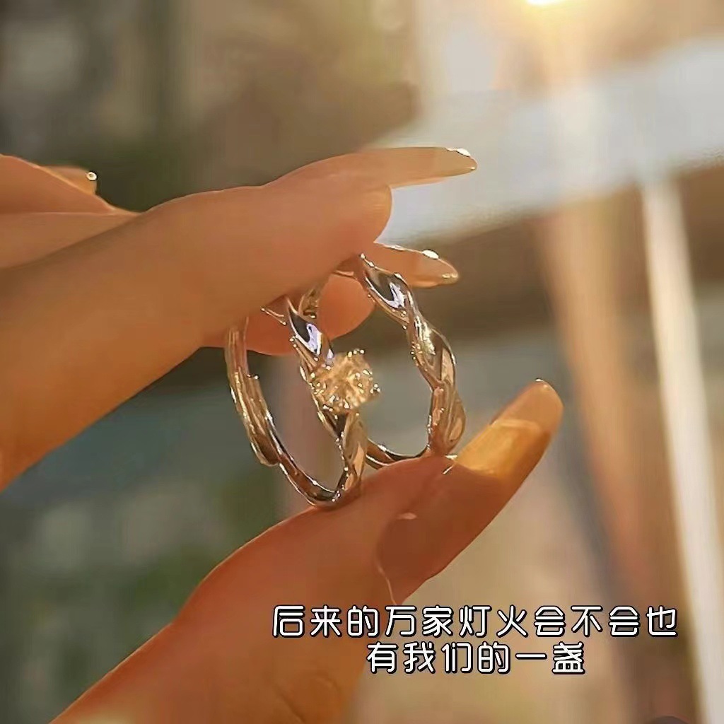 Fanc范I琦对戒925银简单爱戒指情侣ins时尚开口送女友情人节礼物