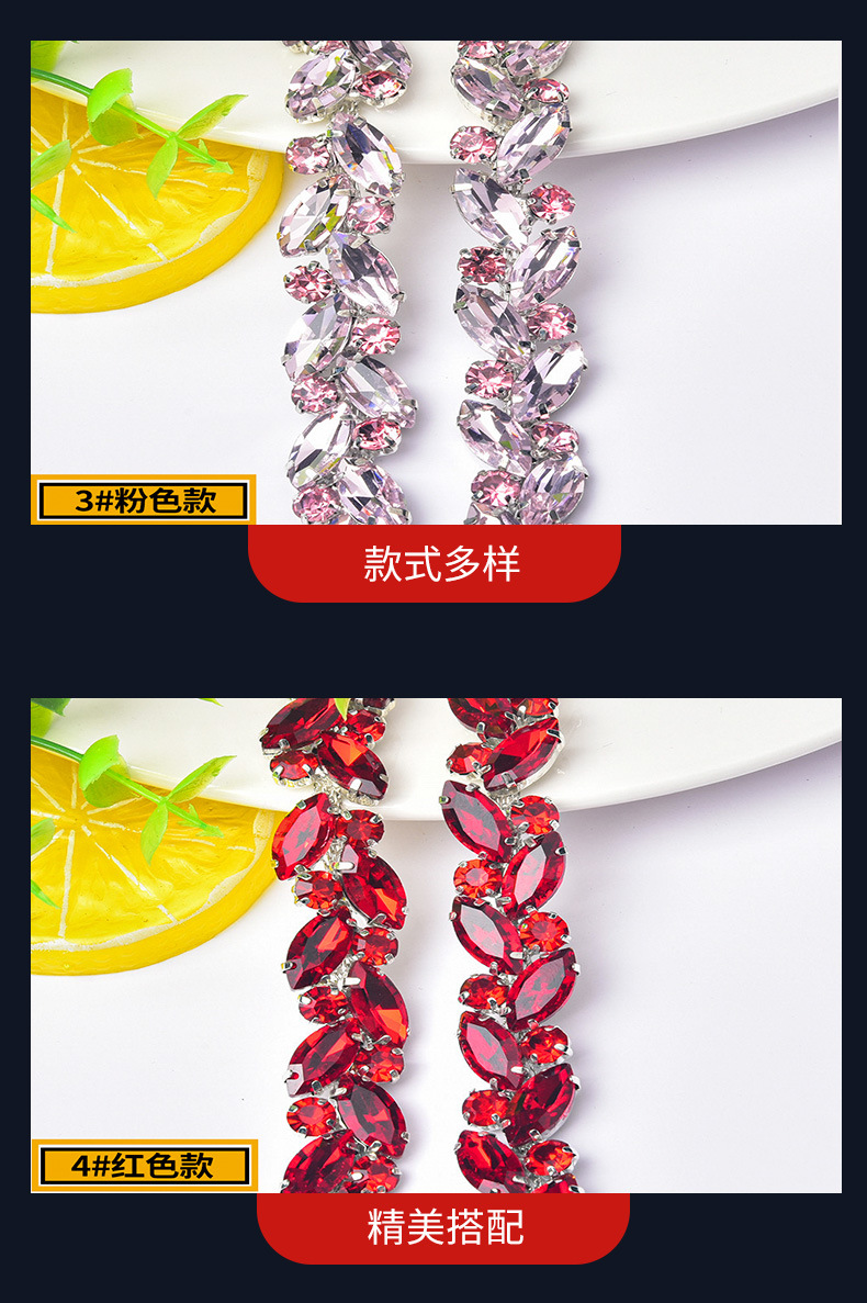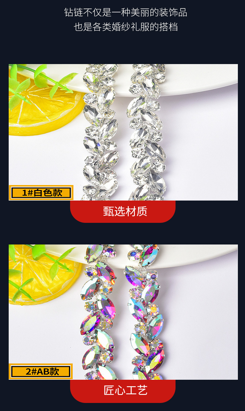 彩色密集爪钻链马眼玻璃水钻花链DIY手缝玻璃钻条演出服装饰配件
