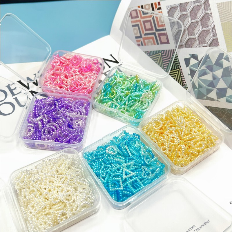 混装渐变色ABS仿珍珠片diy镂空蝴蝶结五角星装饰品奶油胶咕卡配件