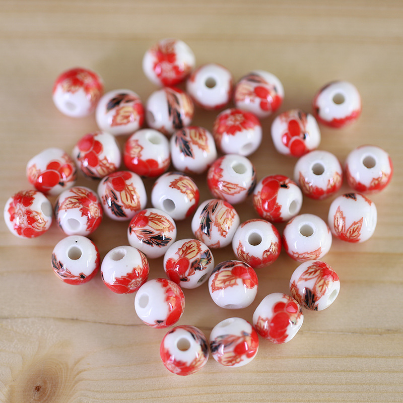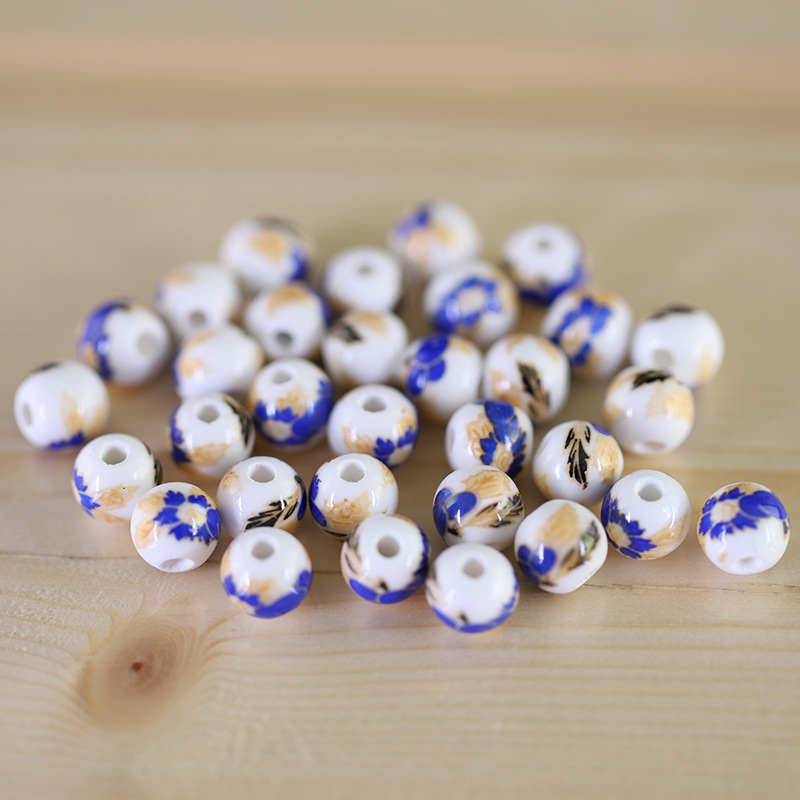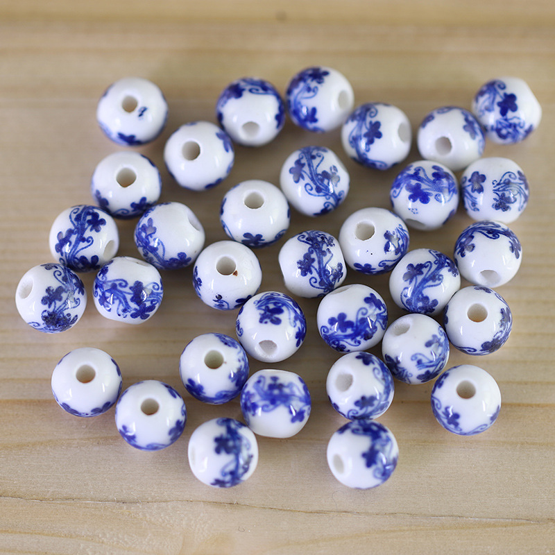 陶瓷珠混装 多样青花陶瓷珠编花篮大孔散珠diy材料中国结串珠饰品