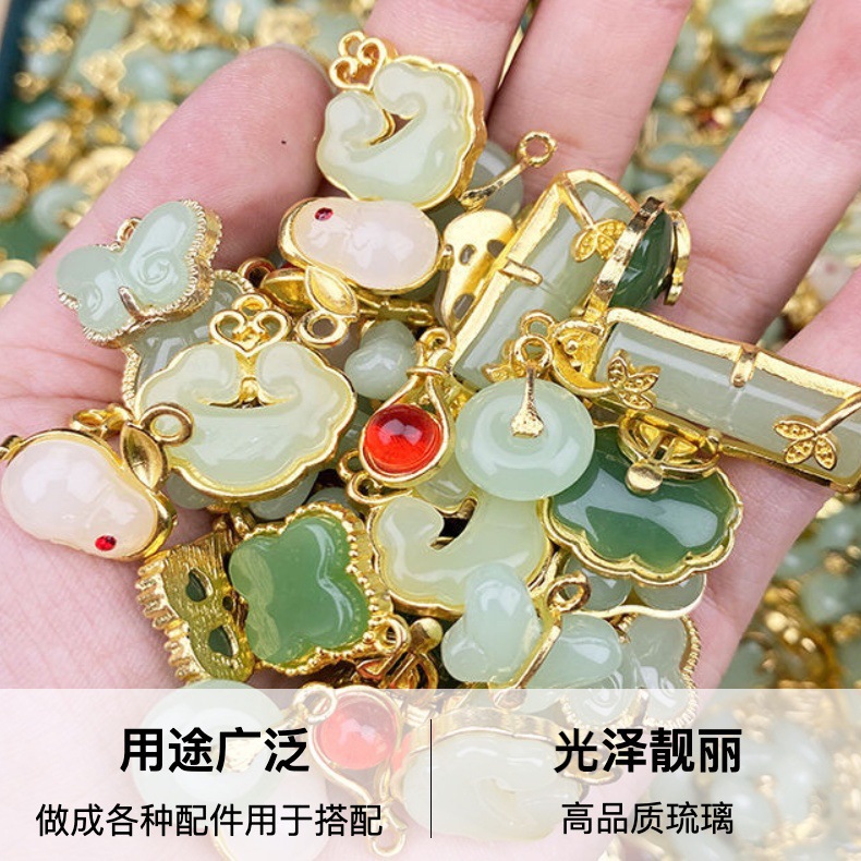 琉璃仿玉平安扣吊坠diy挂件美甲饰品配件挂件配件吊坠混装批发