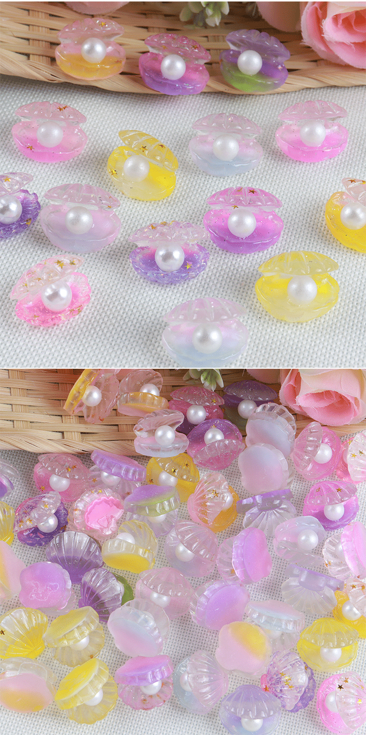 树脂珍珠贝壳渐变色diy手工发饰耳环材料奶油胶手机壳贴片配件