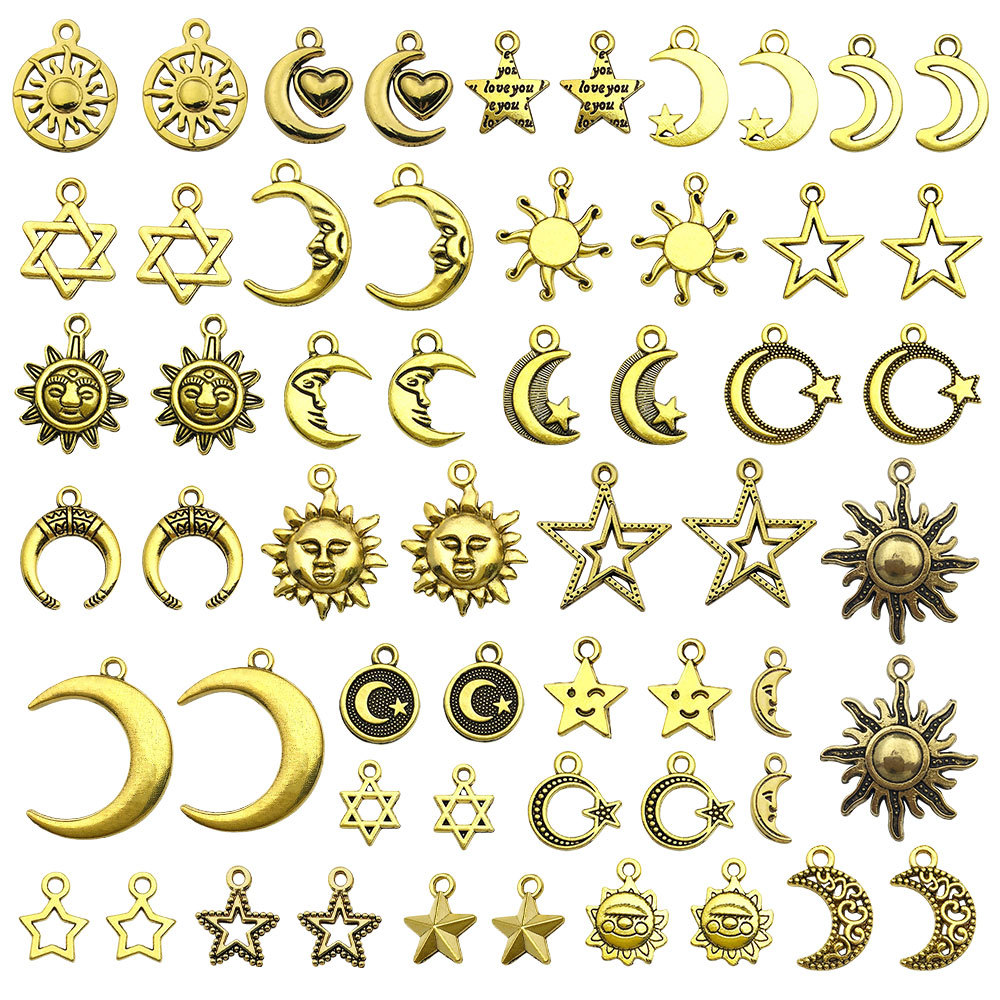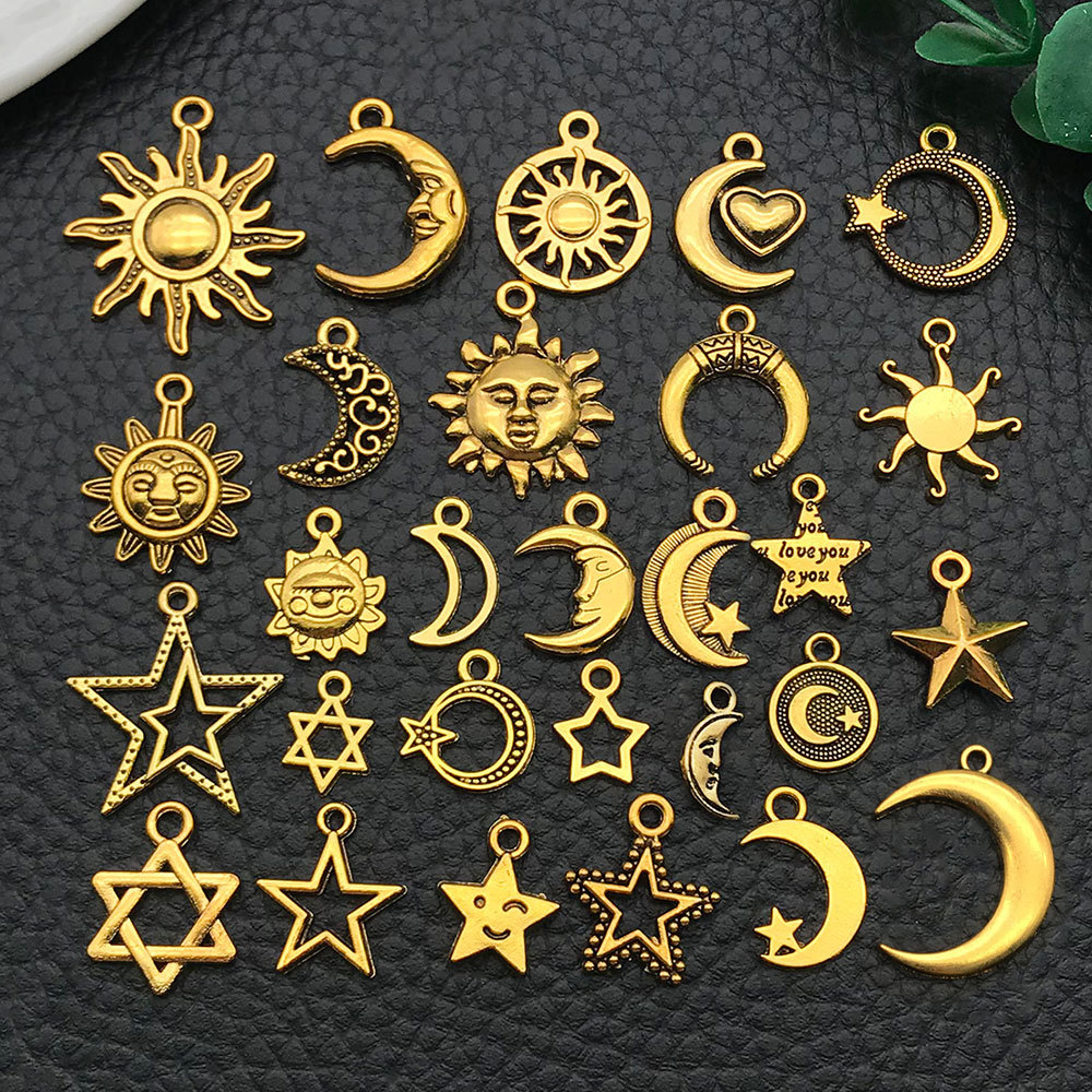 混装太阳月亮星星古金饰品配件diy手链项链耳环吊坠星月款小挂件