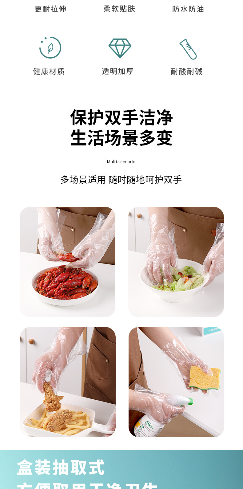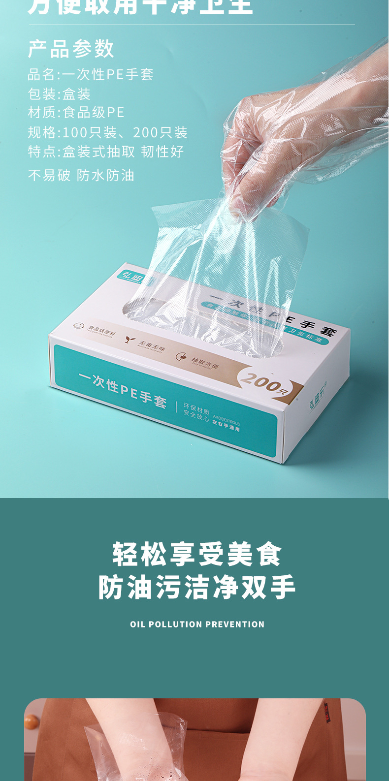 一件代发盒装抽取式食品级PE加厚塑料餐饮外卖家用一次性手套批发