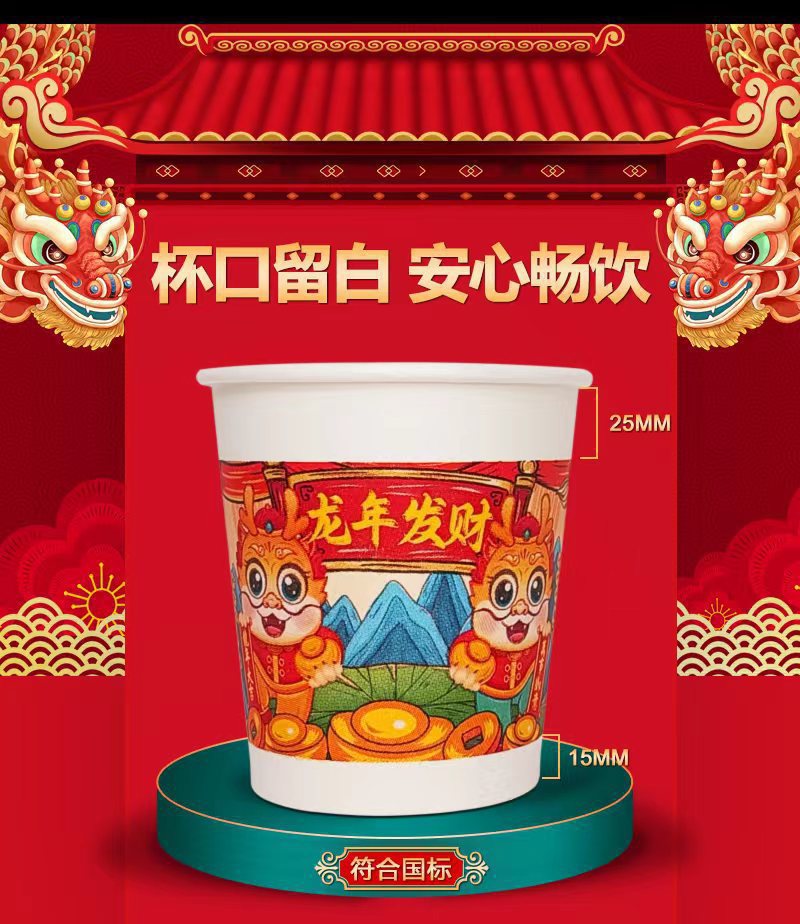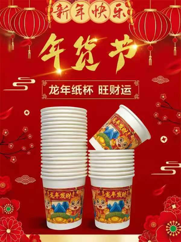 2024龙年限定一次性纸杯批发加厚纸杯家用结婚新年用品纸杯子茶杯