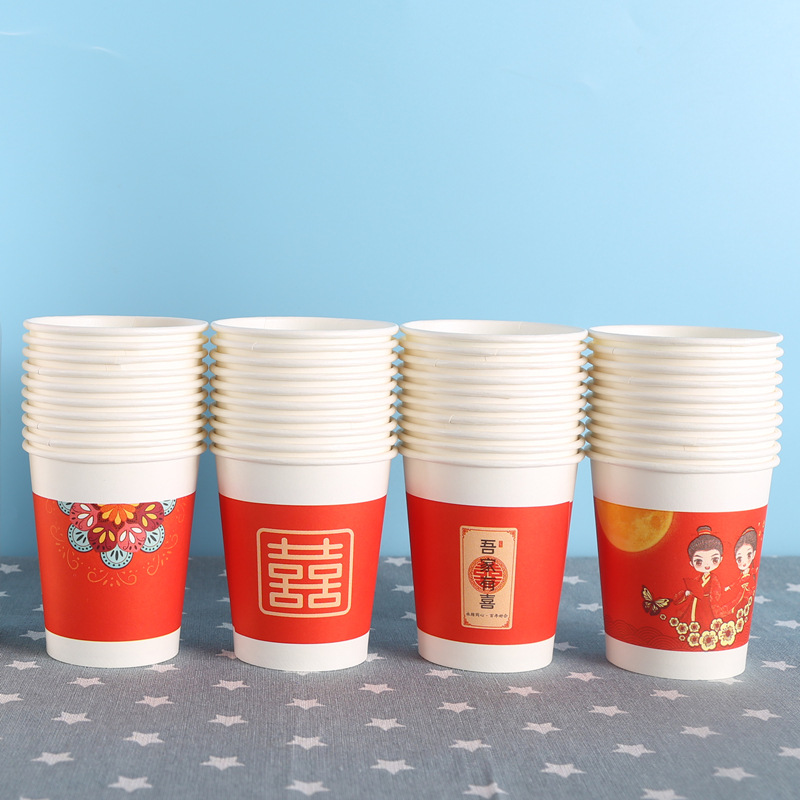 结婚纸杯批发 婚庆加厚喜庆本色乔迁一次性纸杯 生日喜事用品大全