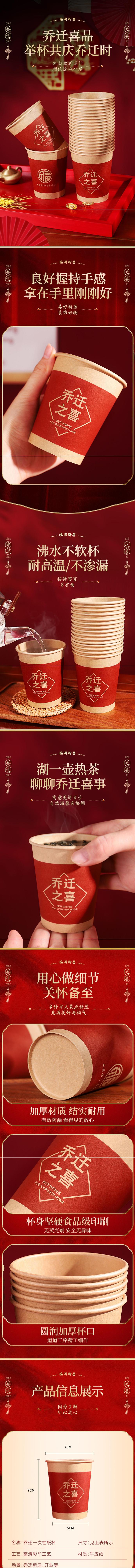 素锦一次性纸杯子乔迁之喜迁新居搬家用品进宅加厚加硬喜事家宴酒