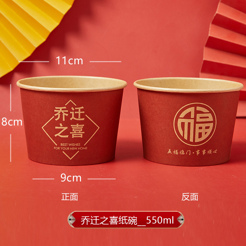 结婚一次性纸碗喜碗加厚红色圆形婚礼酒席碗筷婚宴用纸杯餐具套装
