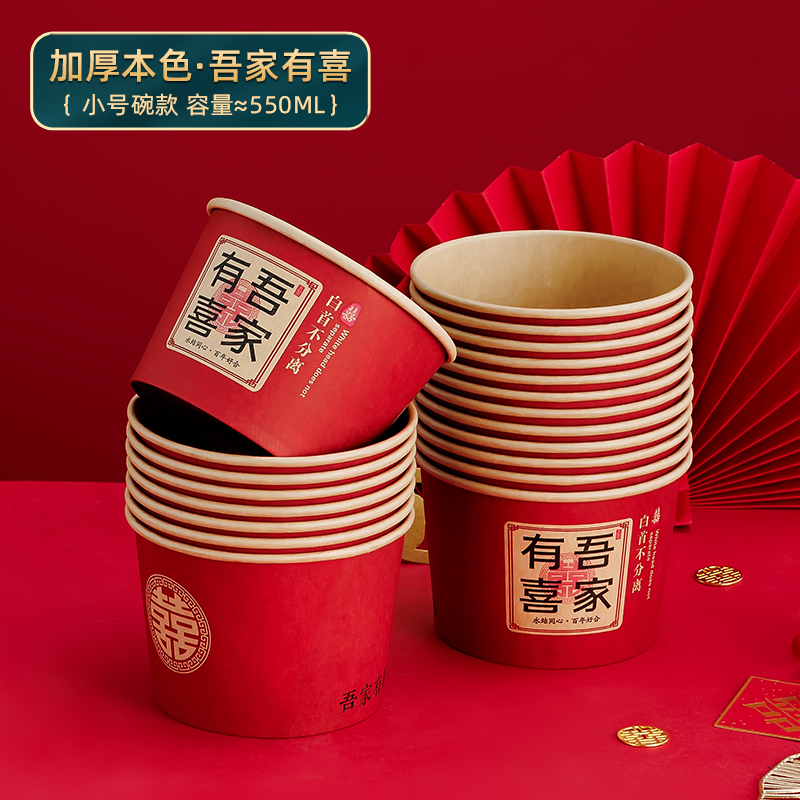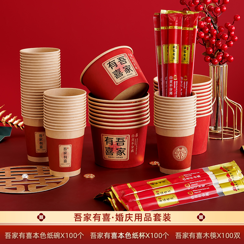 结婚纸杯一次性杯子碗筷子套装喜宴勺子托盘乔迁之喜餐具婚宴喜碗