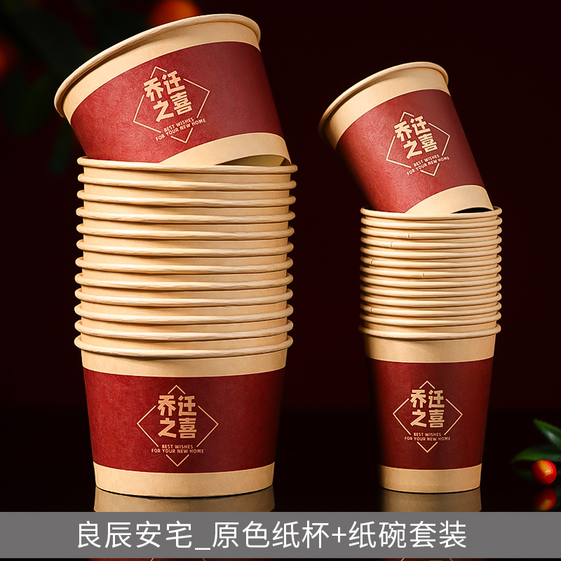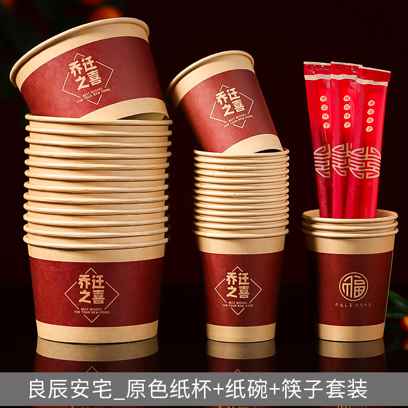 一次性纸杯子乔迁之喜新居搬家用品进宅加厚纸碗水杯仪式入宅装饰