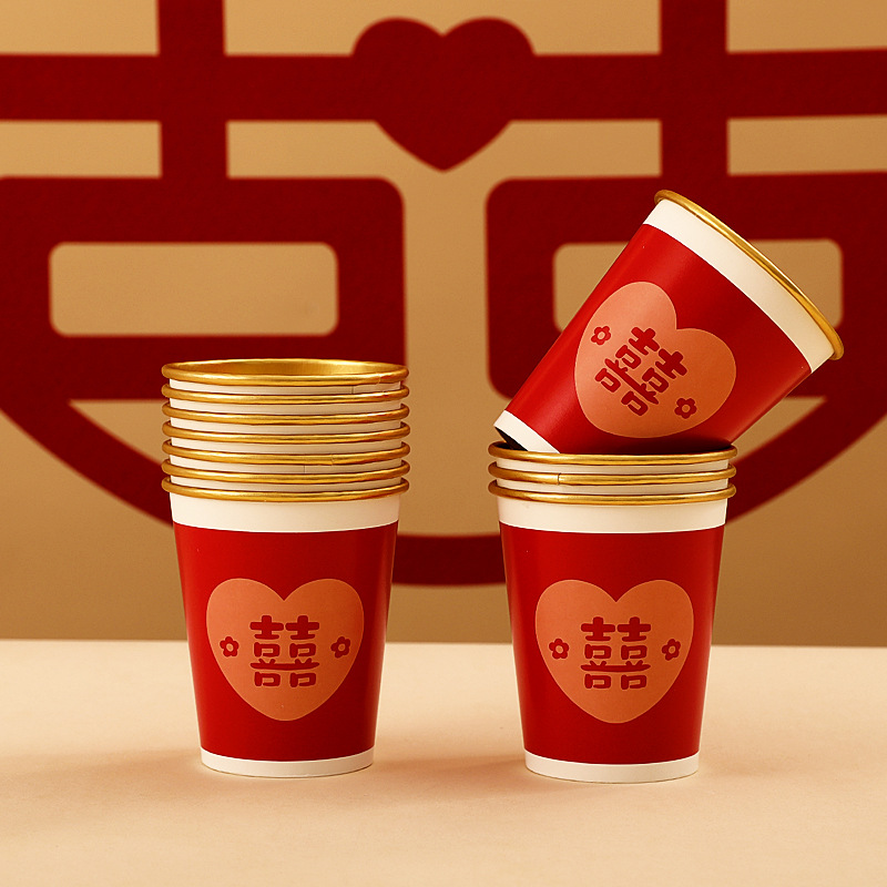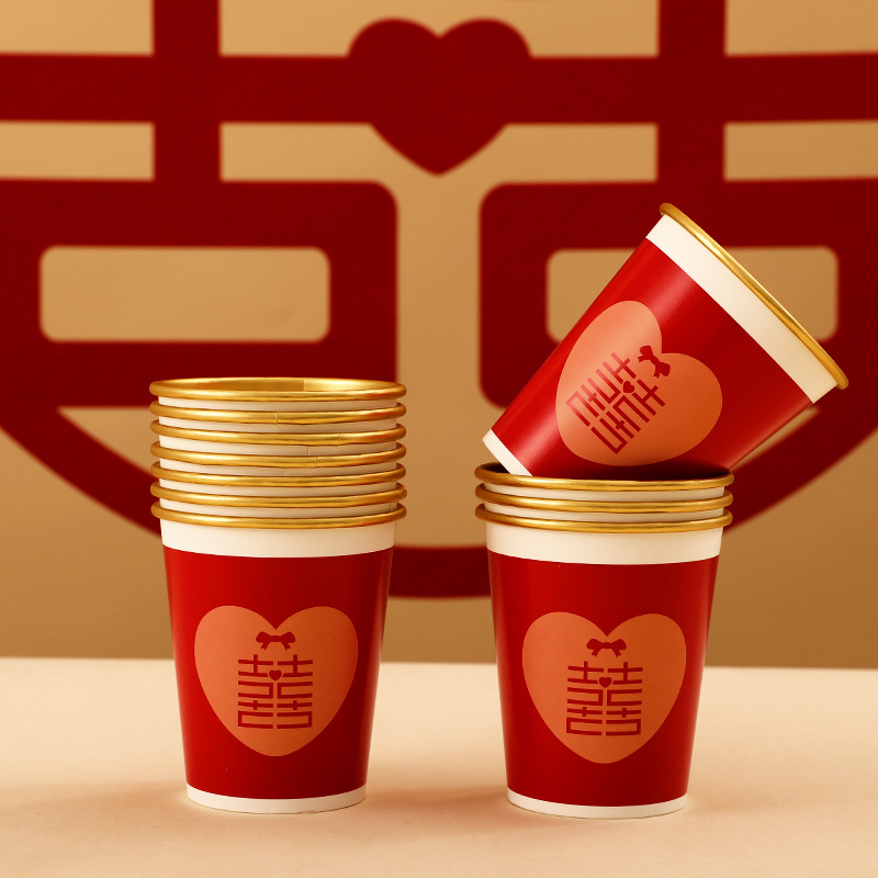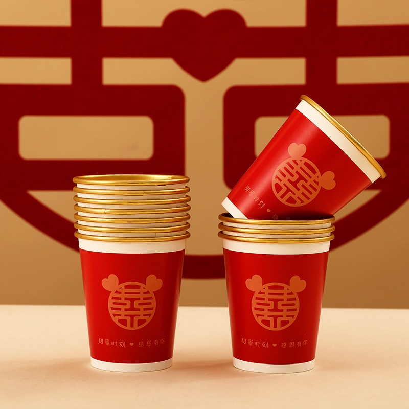 结婚一次性纸杯子金箔加厚婚礼喜杯婚宴水杯家用红色婚庆用品大全