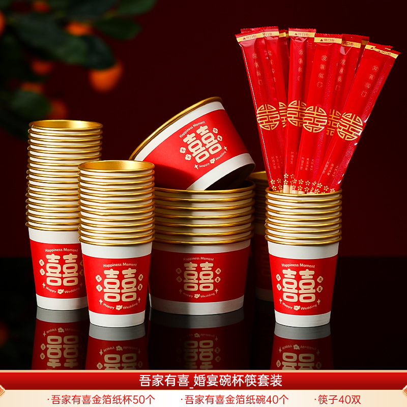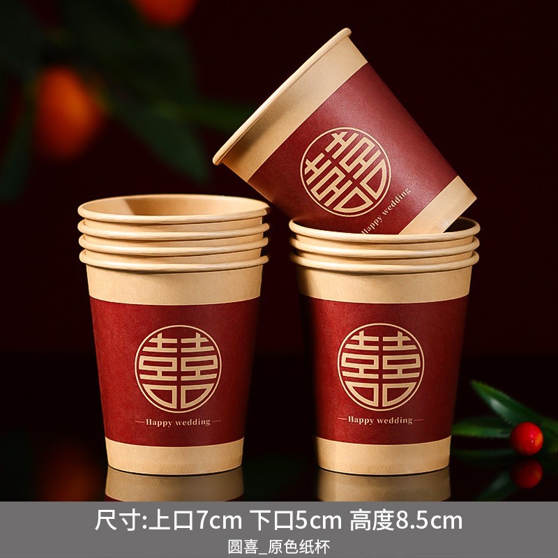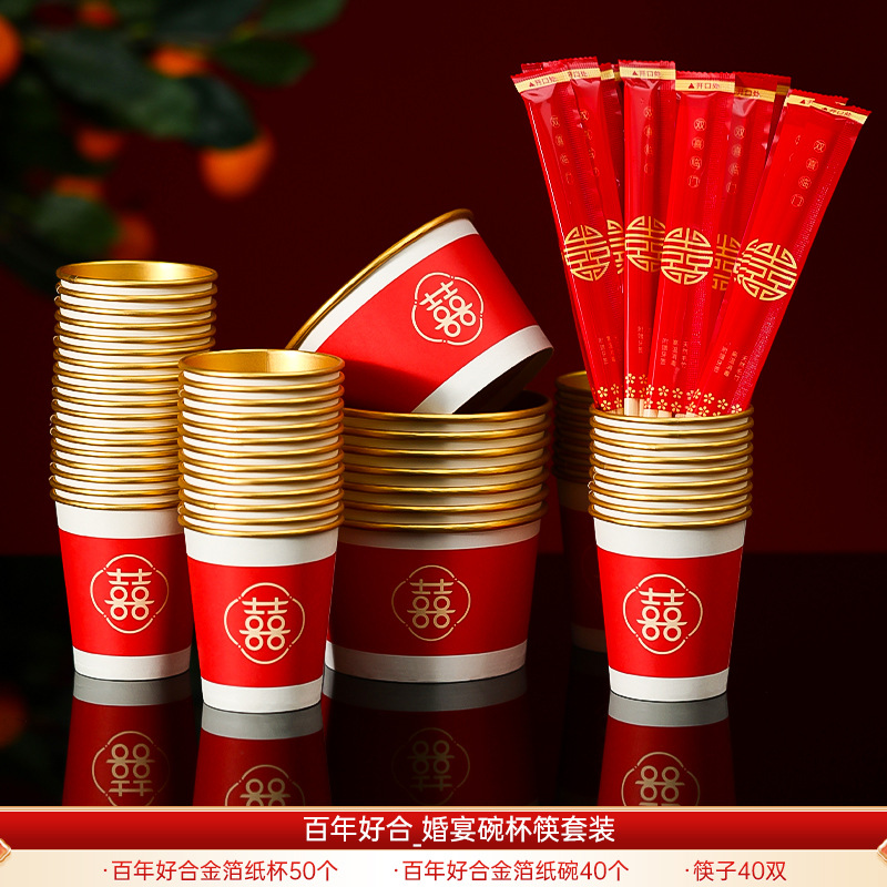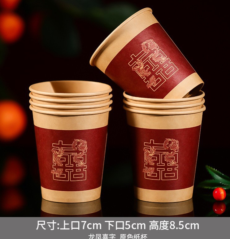 结婚纸杯加厚金箔一次性喜杯子订婚宴敬茶杯红色水杯婚礼用品大全