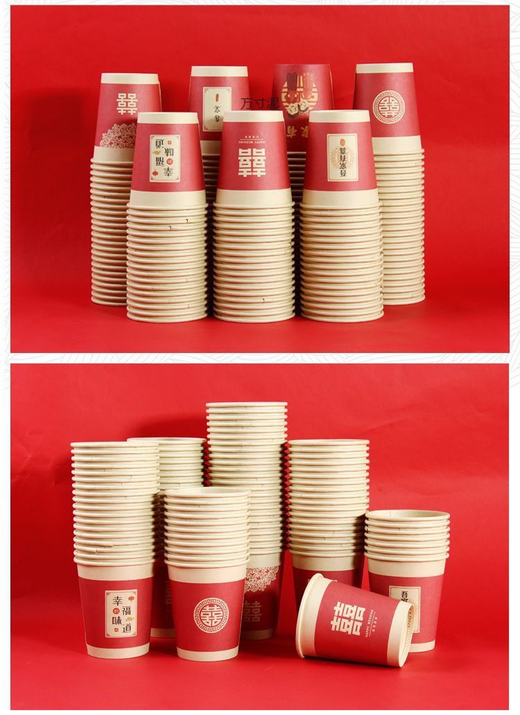结婚杯子婚礼家用喜字杯订婚喜事红色水杯婚庆用品一次性纸杯批发