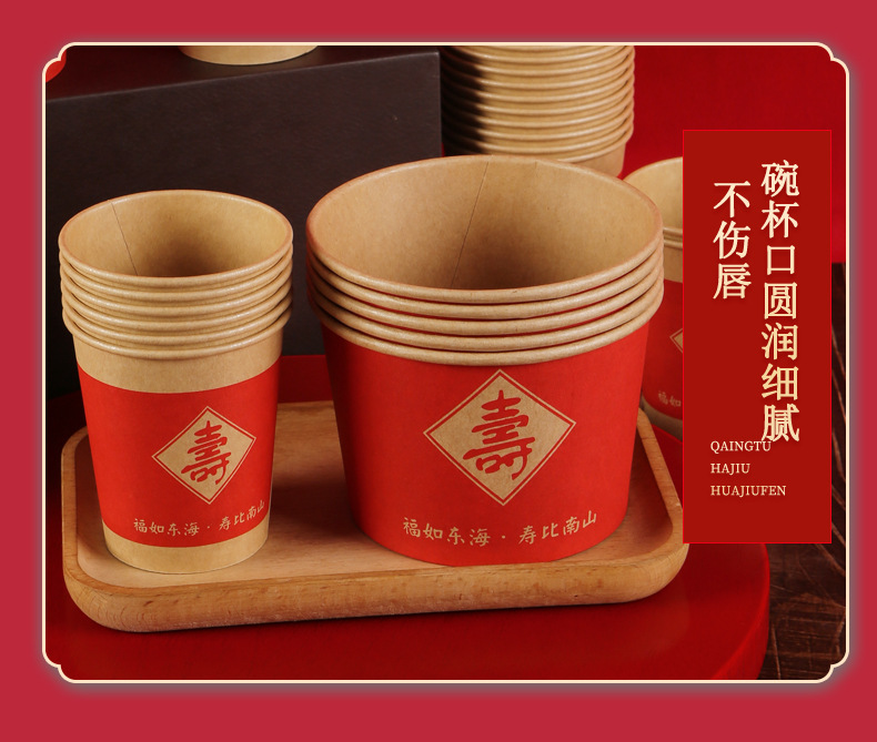 寿字一次性纸碗纸杯加厚祝寿碗筷餐具套装老人生日过寿杯子寿宴碗