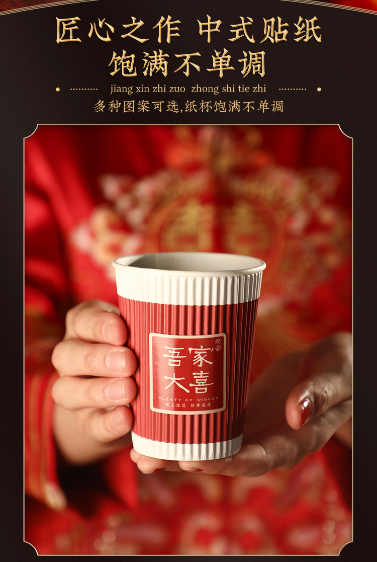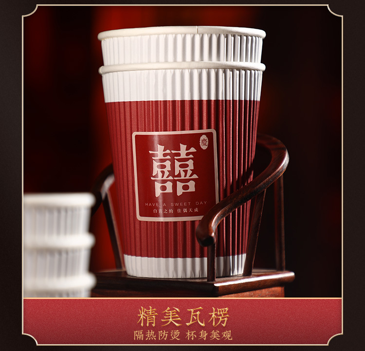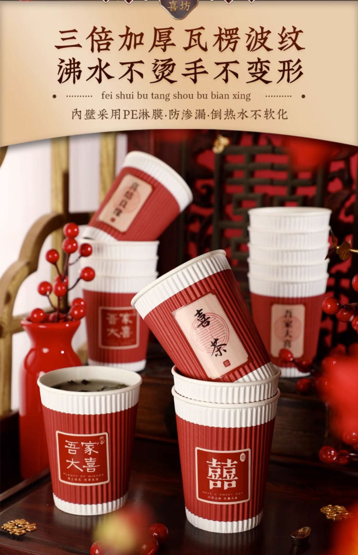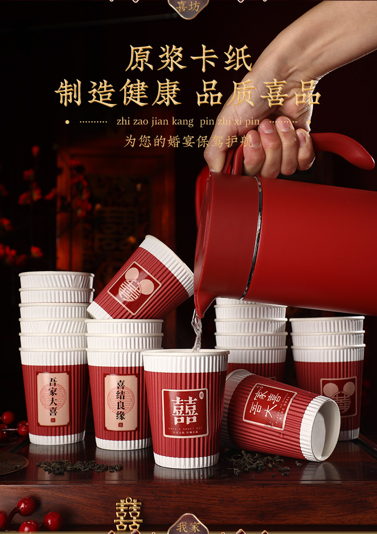 结婚庆用品大全婚宴一次性杯子喜字家用喜杯婚礼水杯红色纸碗纸杯
