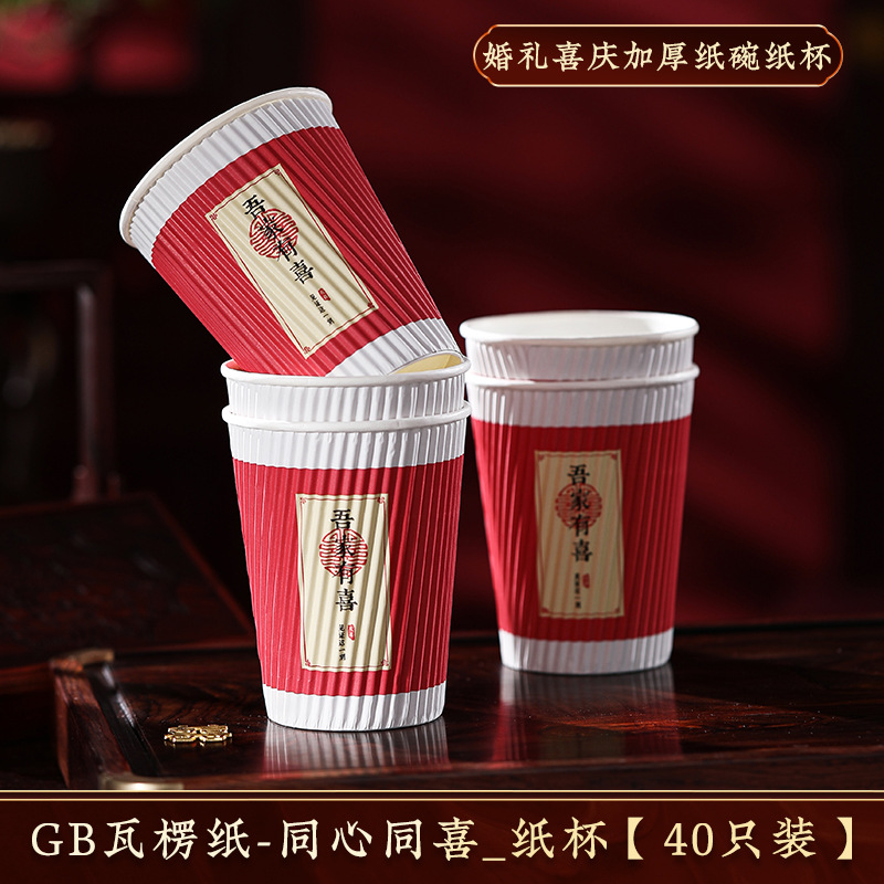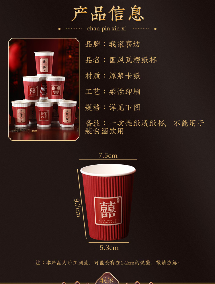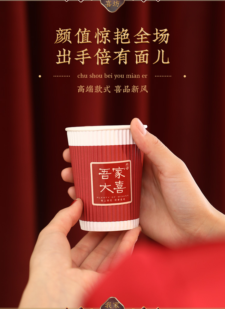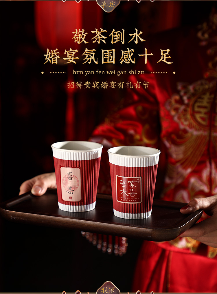 结婚庆用品大全婚宴一次性杯子喜字家用喜杯婚礼水杯红色纸碗纸杯