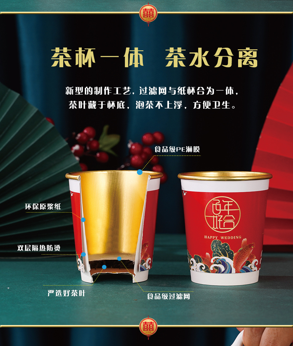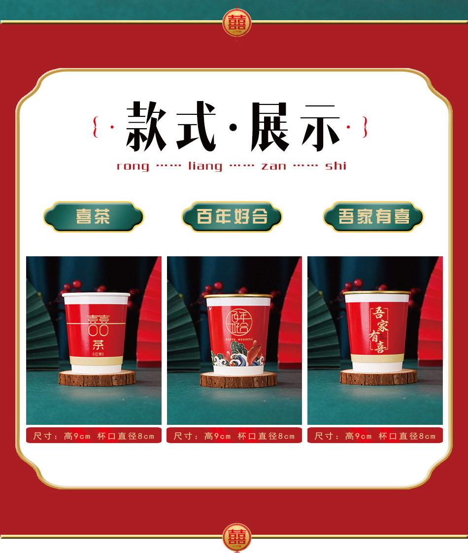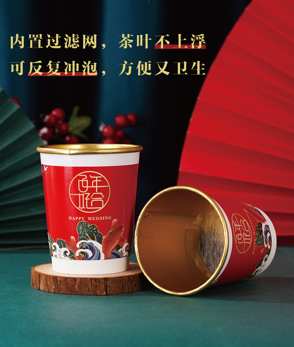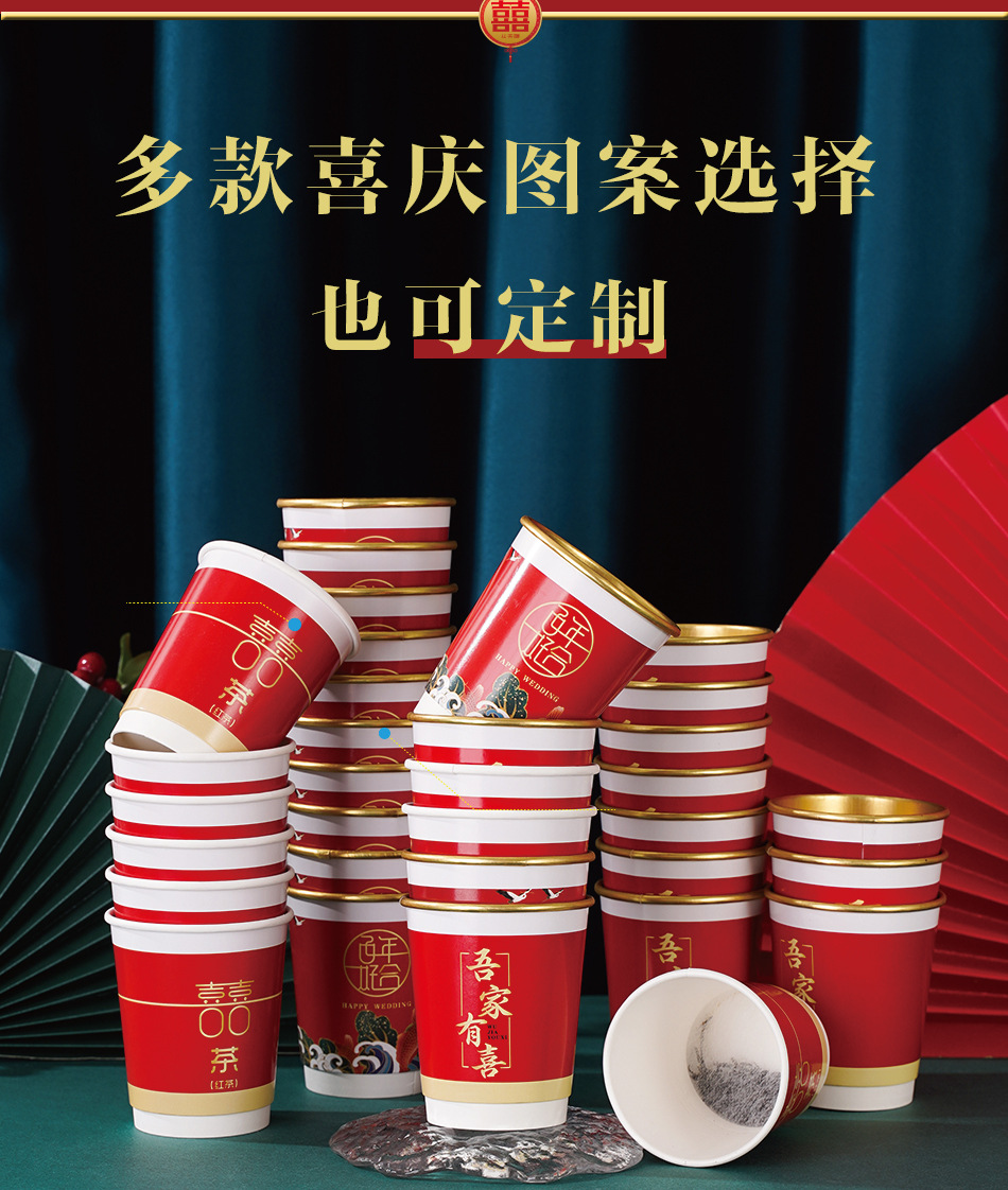 结婚纸杯一次性喜杯子婚礼敬茶水杯加厚婚宴红色家用茶杯用品大全