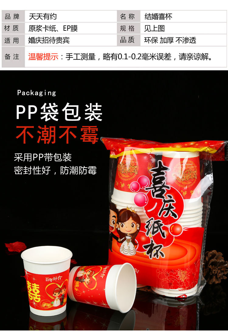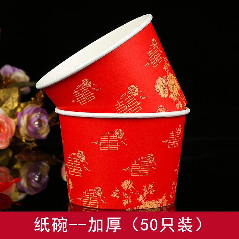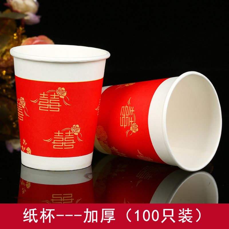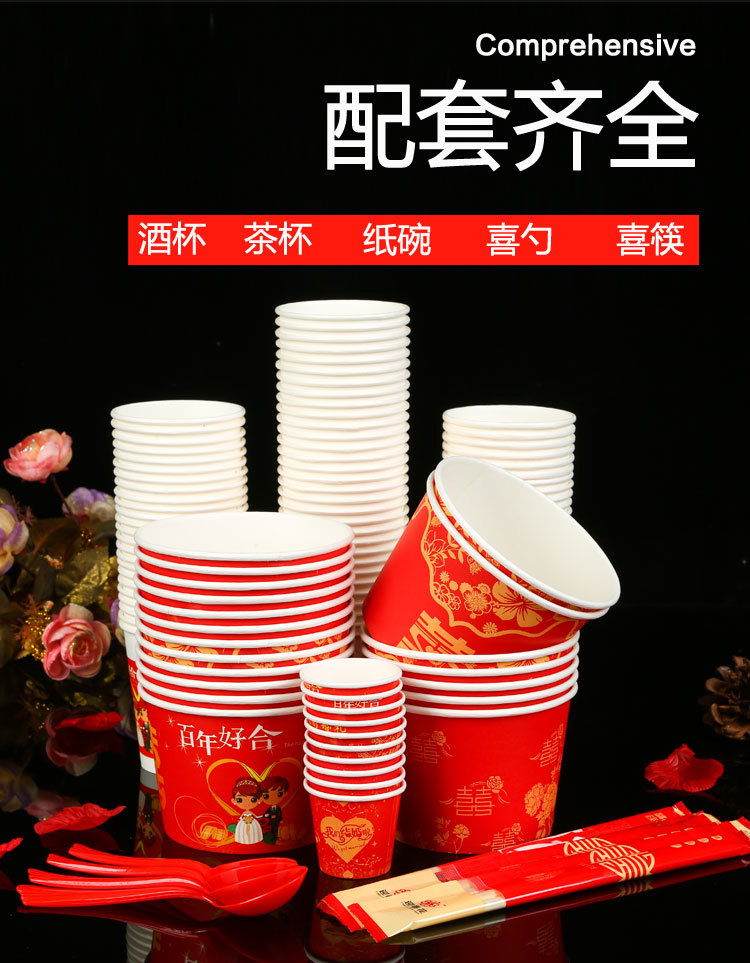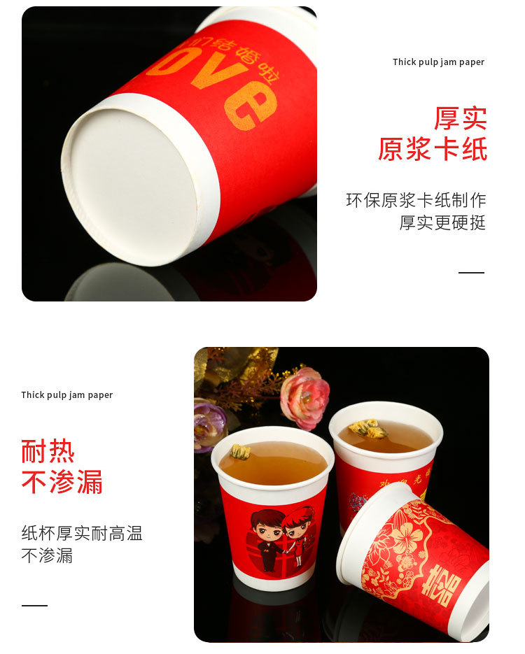 婚庆纸杯子加厚结婚一次性红色纸杯纸碗敬酒杯喜庆茶水杯婚宴餐具