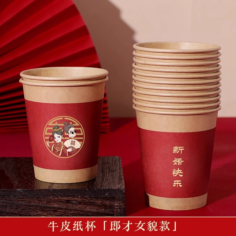 婚庆水杯婚宴一次性红色纸杯婚礼喜庆敬茶杯喜杯子婚礼用品