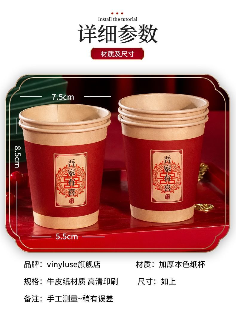 结婚纸杯喜字加厚一次性喜杯子婚庆用品大全婚礼家用红色喜庆水杯
