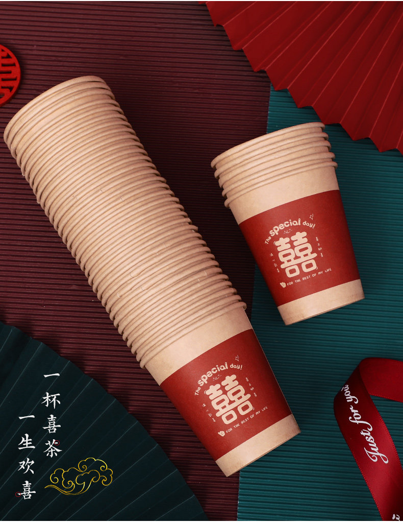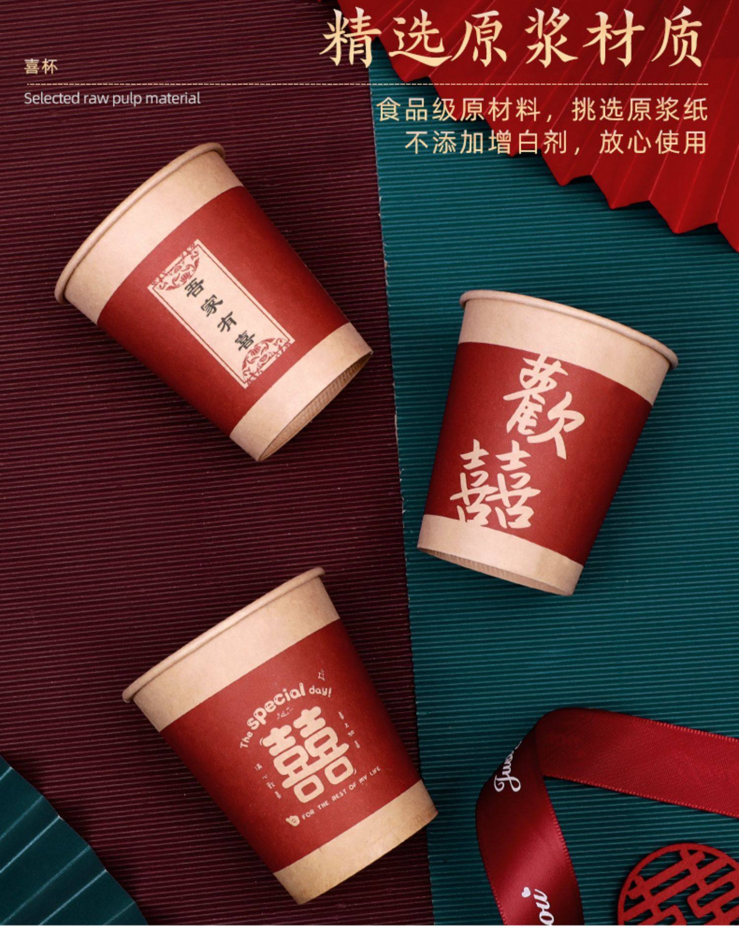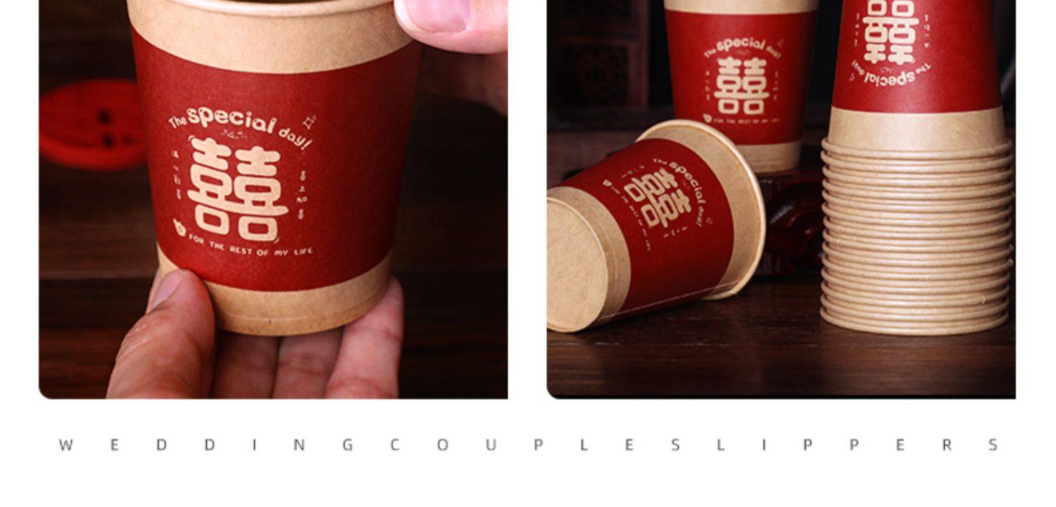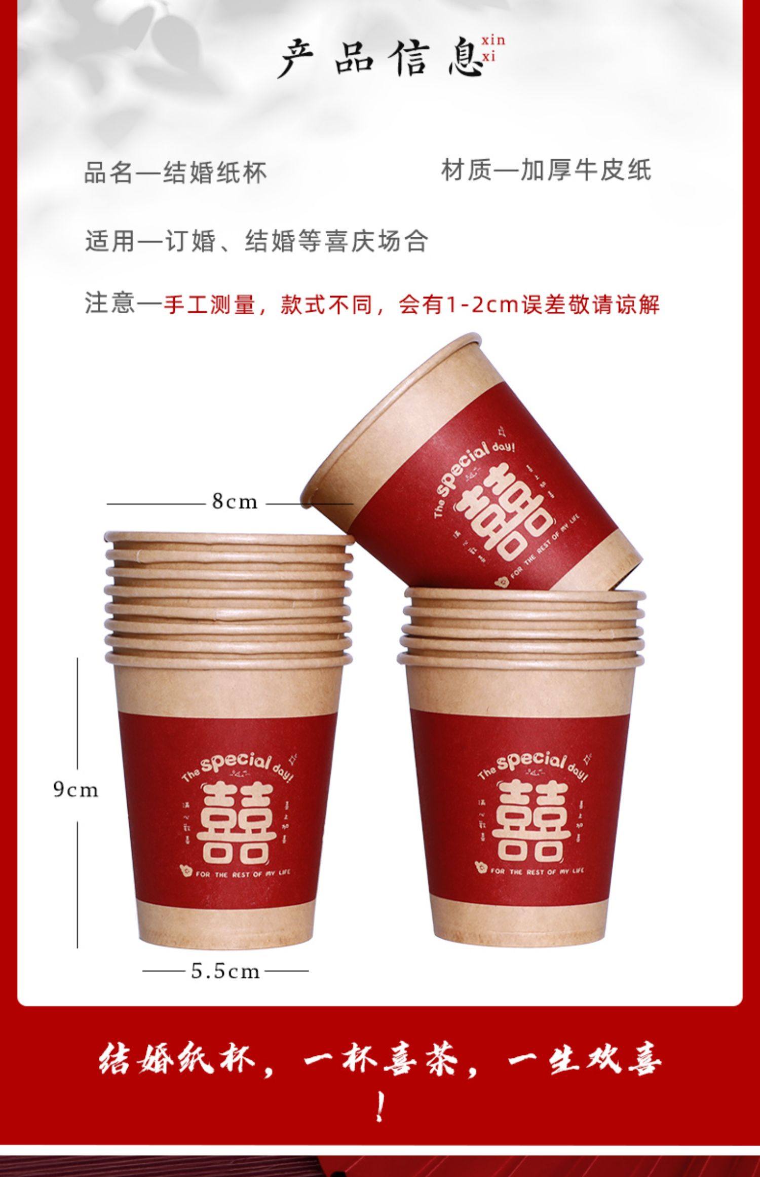 结婚纸杯一次性喜杯子婚礼用品大全婚庆订婚家用婚宴红色加厚水杯