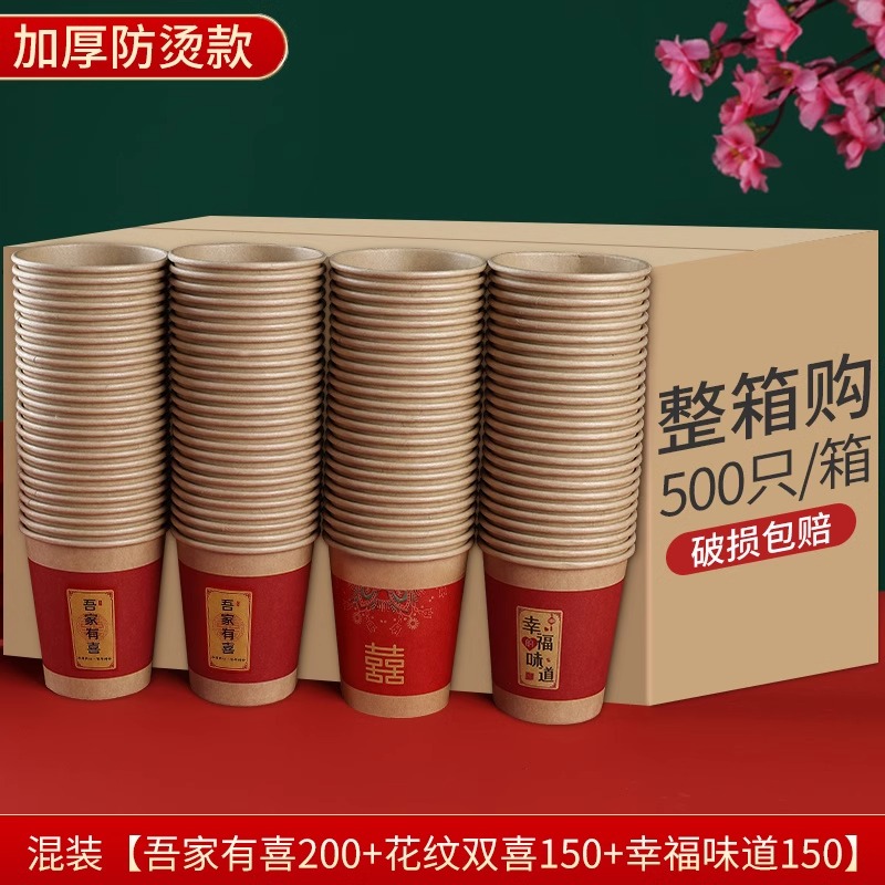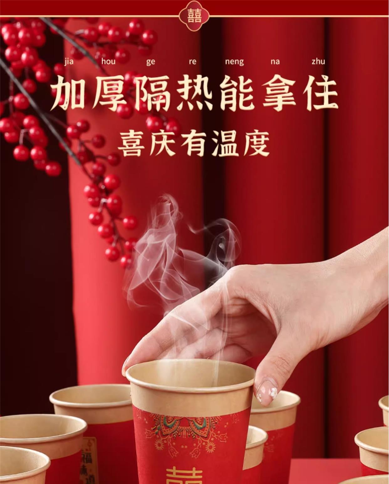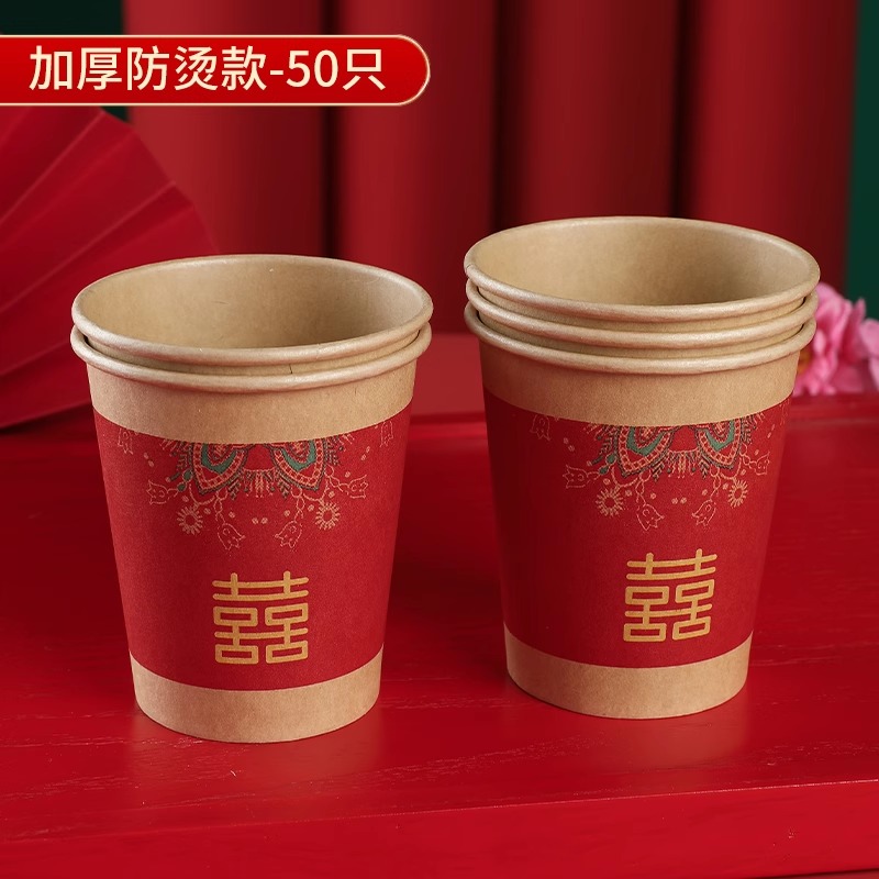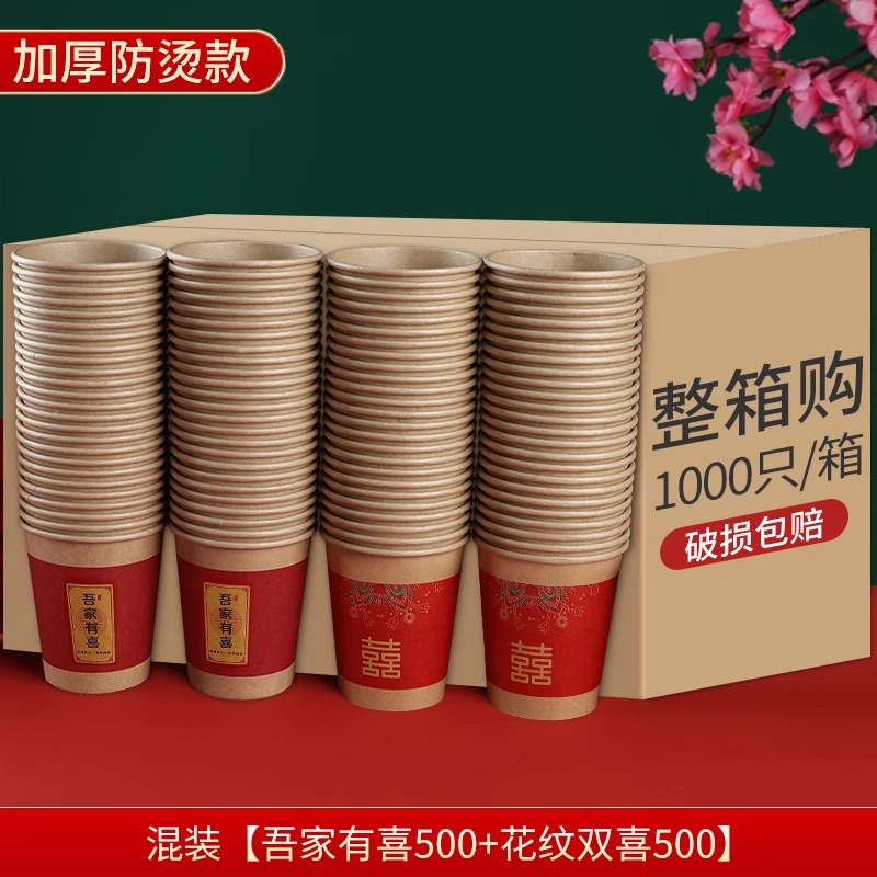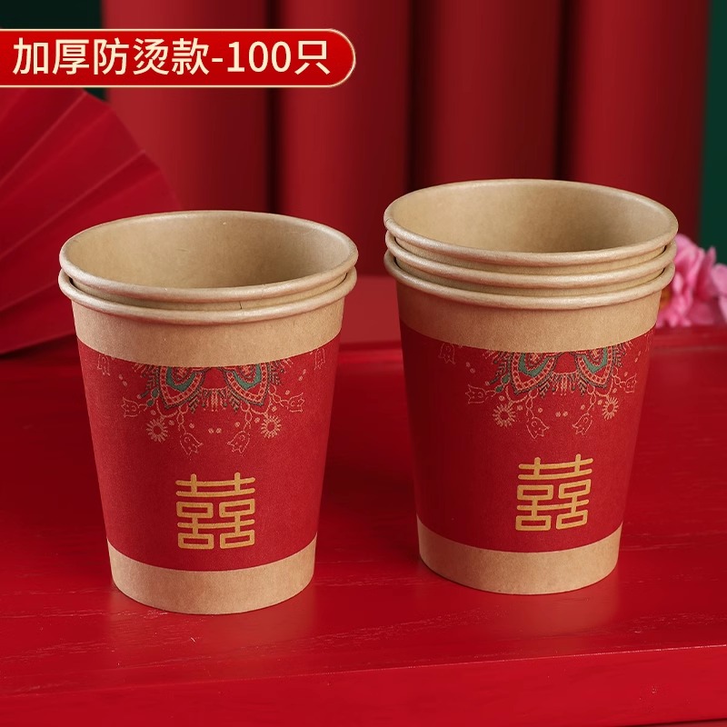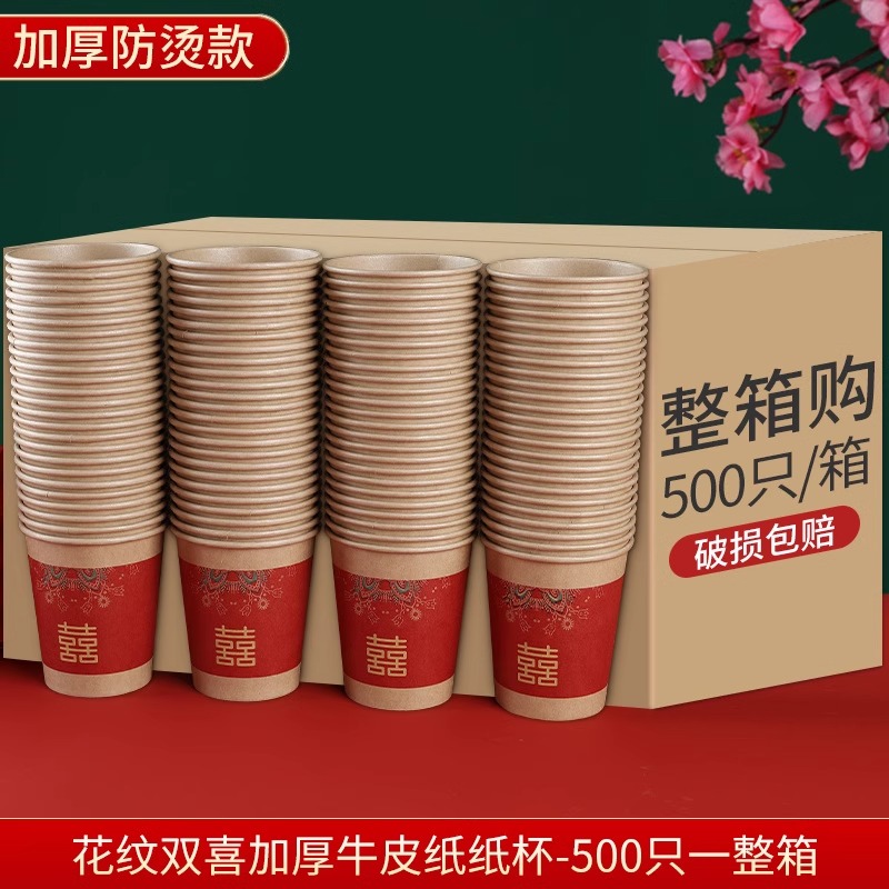 结婚用品大全喜字纸杯备婚婚礼婚庆加厚喜事一次性喜杯子家用北金