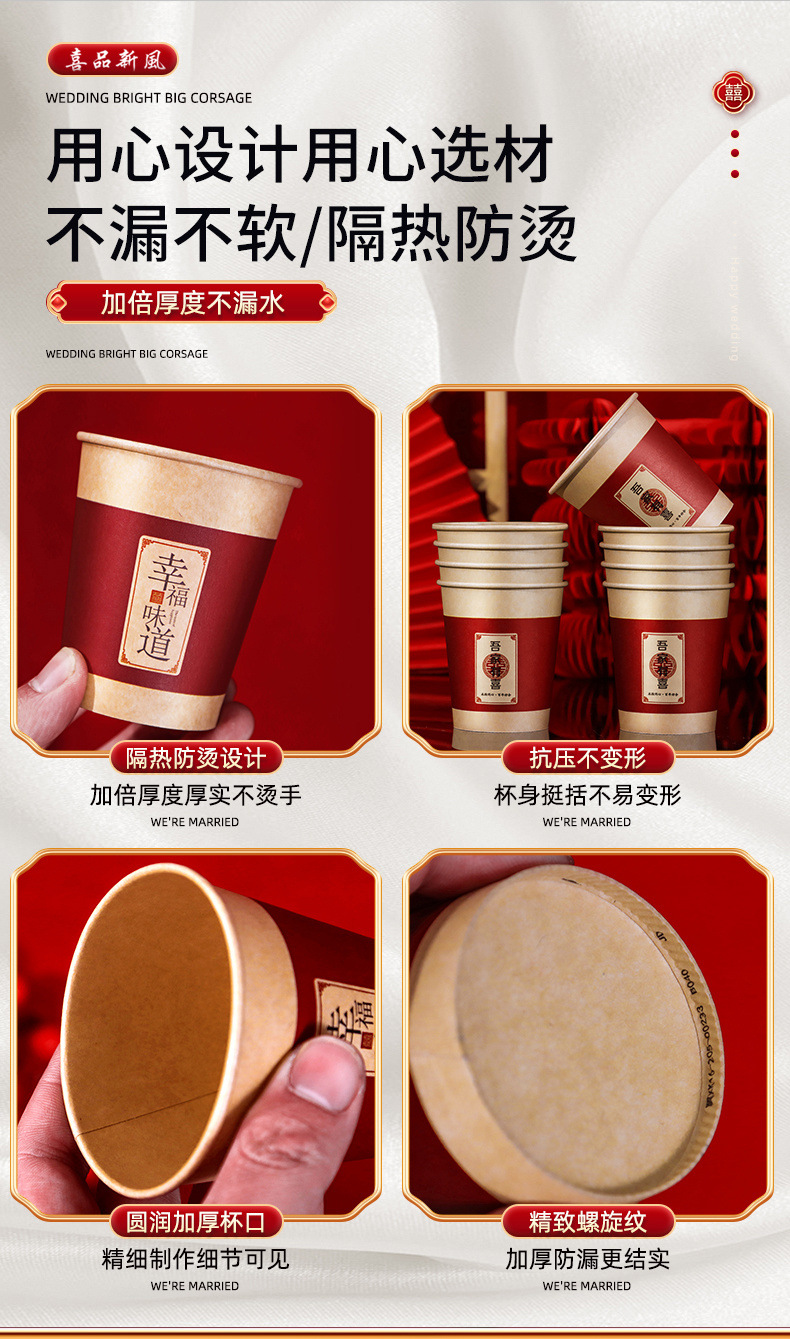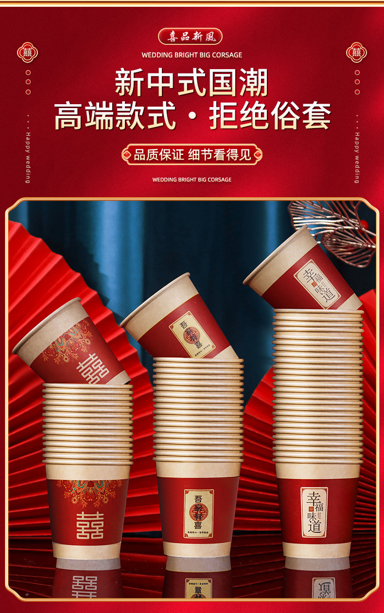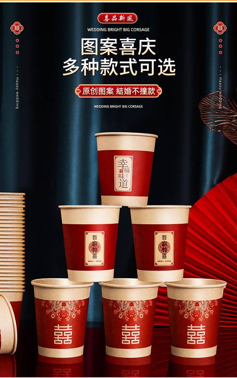 结婚用品大全喜字纸杯备婚婚礼婚庆加厚喜事一次性水杯子家用喜杯