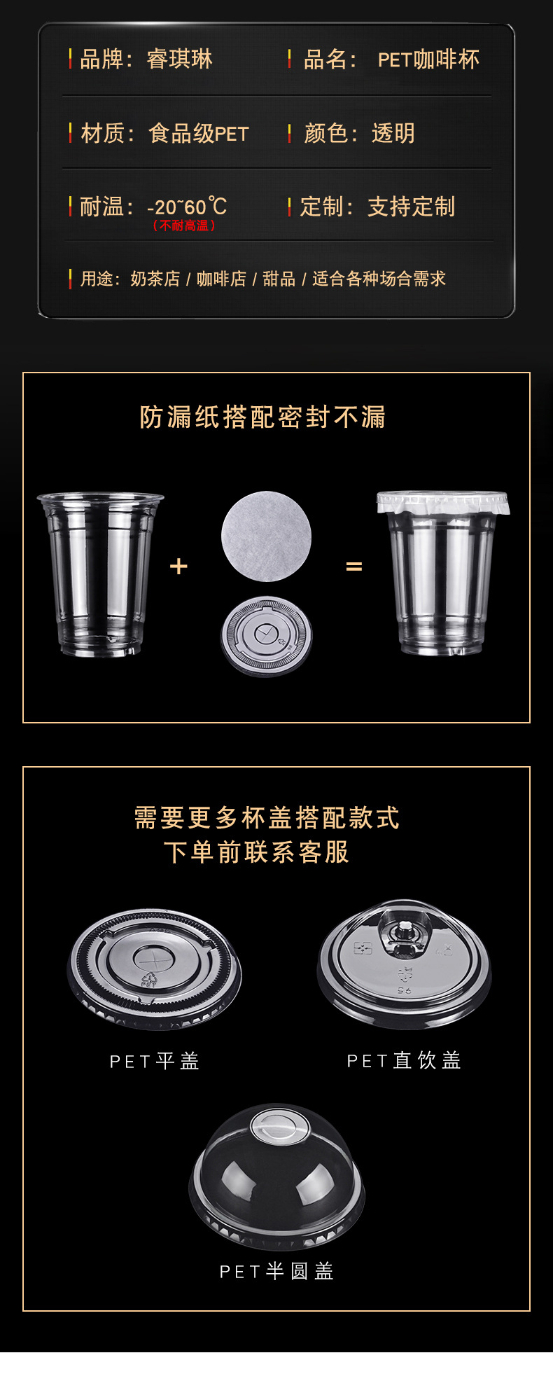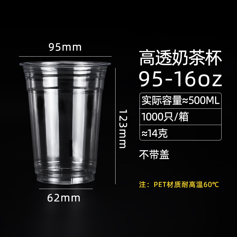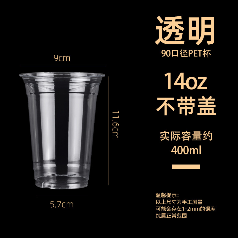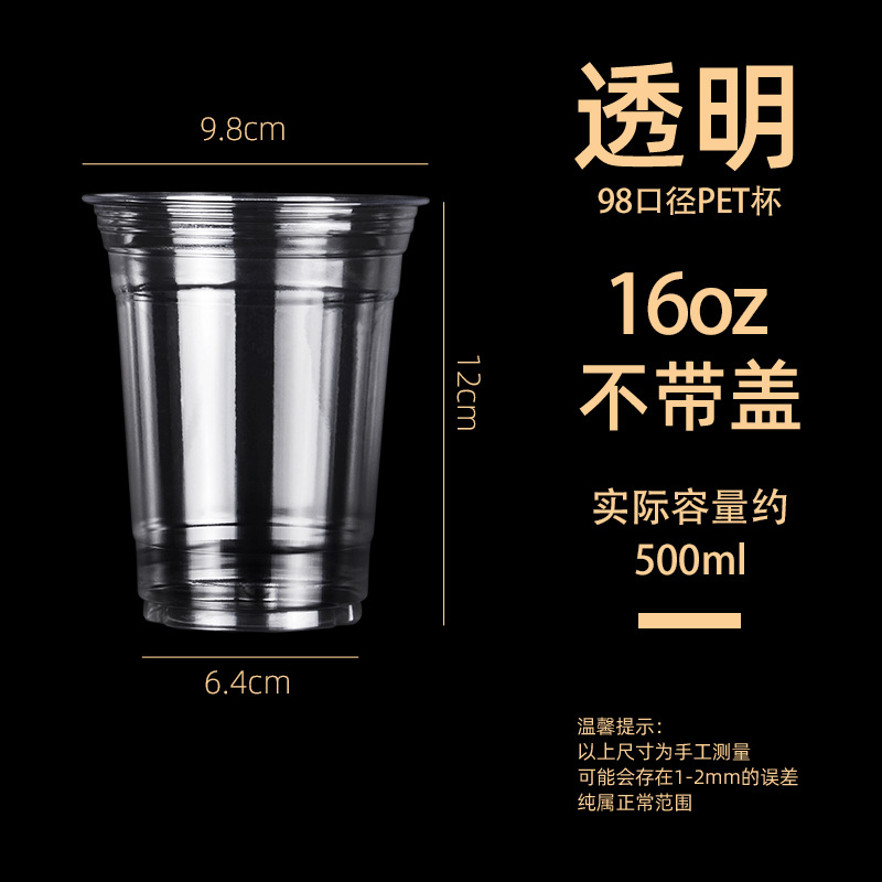 网红PET奶茶杯子一次性带盖透明400ml咖啡杯500冷饮杯柠檬茶杯