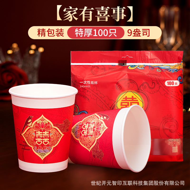 纸杯一次性杯子整箱批发结婚一次性水杯广告商用纸杯定 制印logo