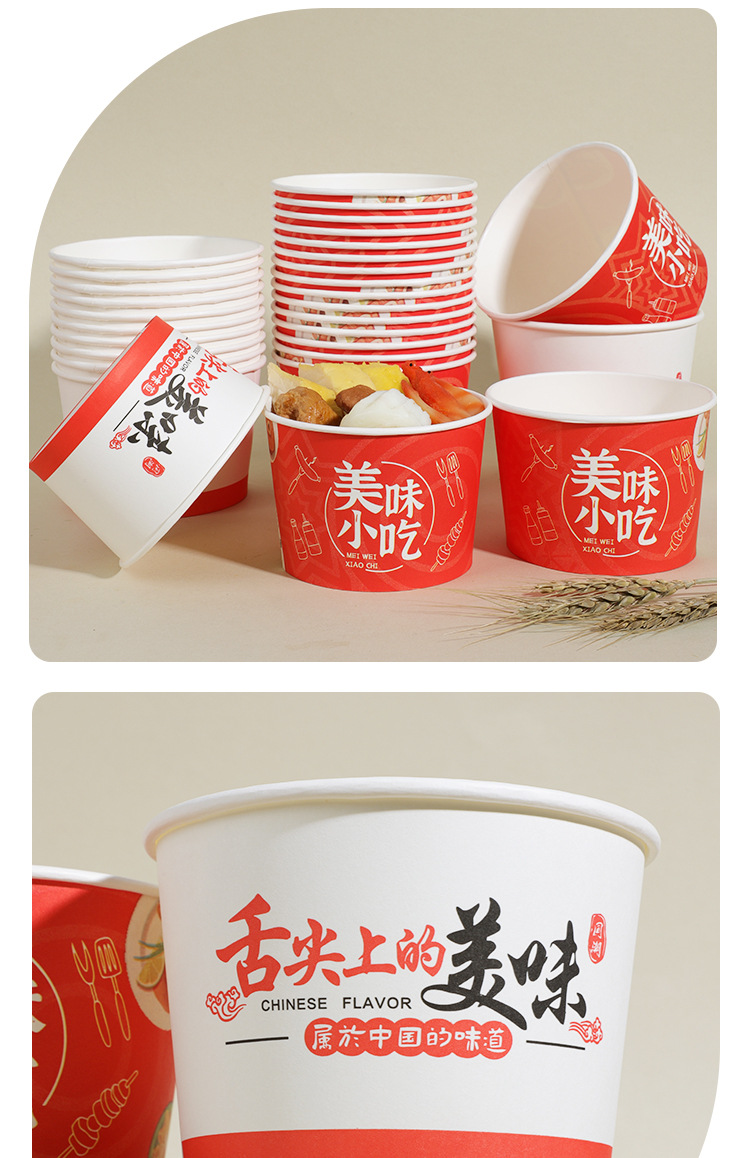 一次性纸碗整箱批发带盖野餐盒定制做商用小吃食品级外卖打包纸碗