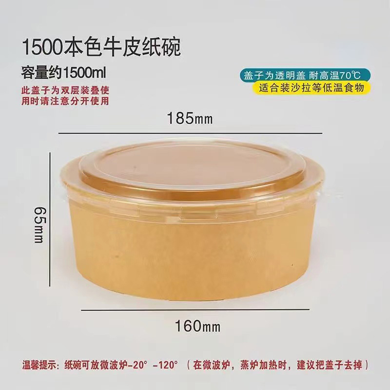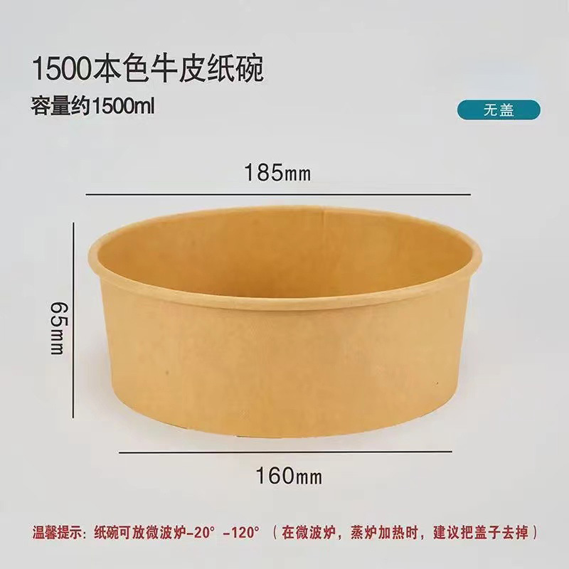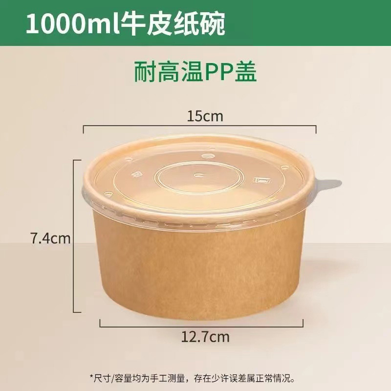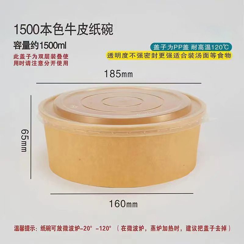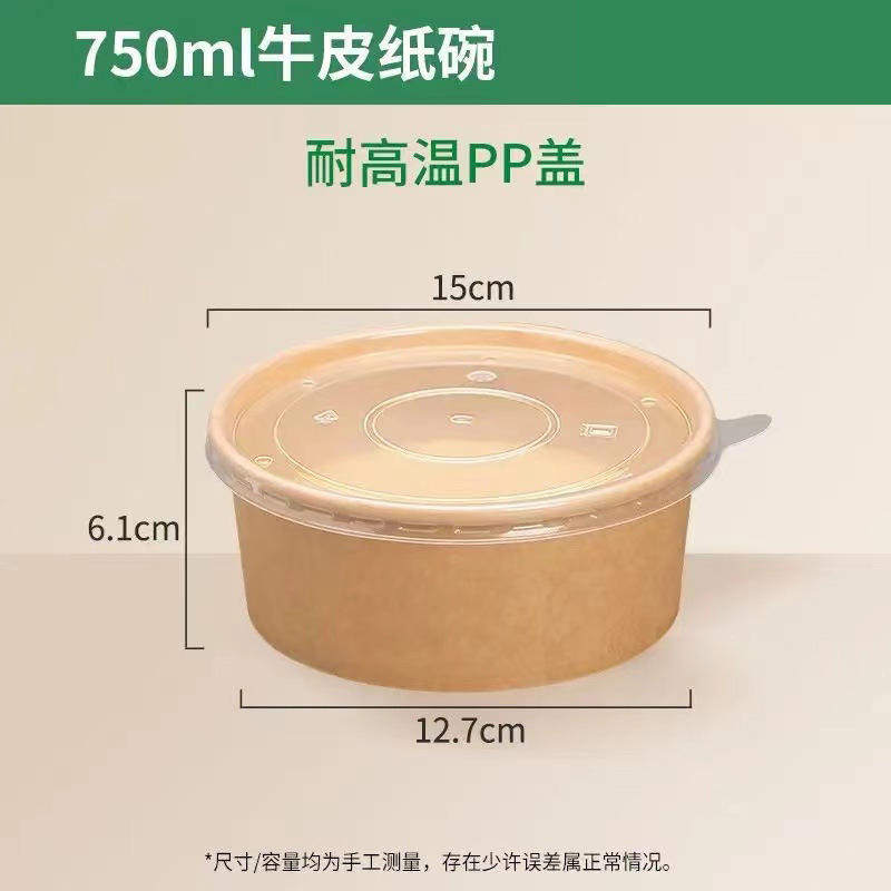 厂家直销打包盒一次性食品级加厚特硬一次性餐盒防漏防水牛皮纸碗