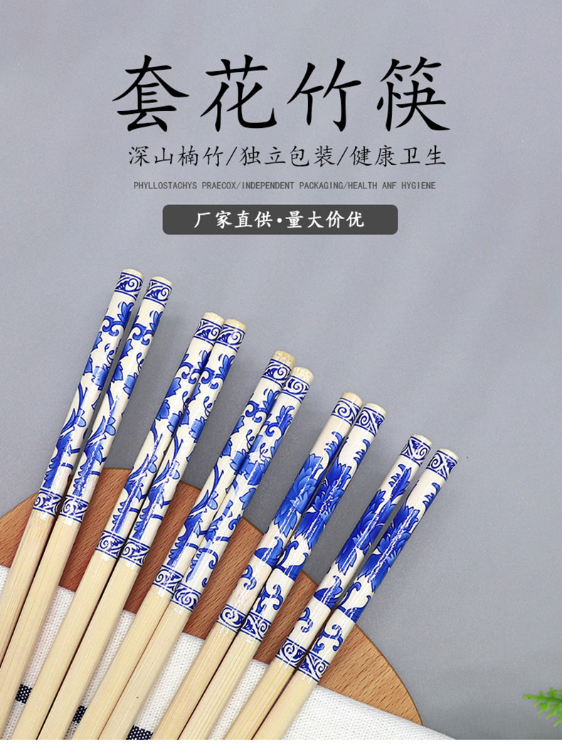 一次性青花瓷竹筷子竹筷独立包装商用外卖方便火锅餐馆筷子批发