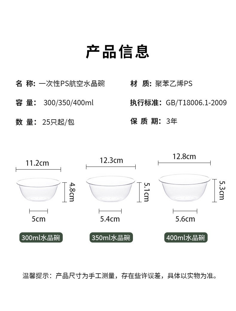 钰得沣一次性碗塑料厚硬质航空碗透明甜品汤碗火锅餐具PS整箱批发