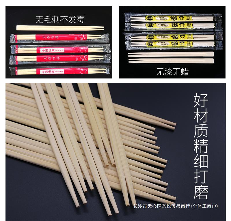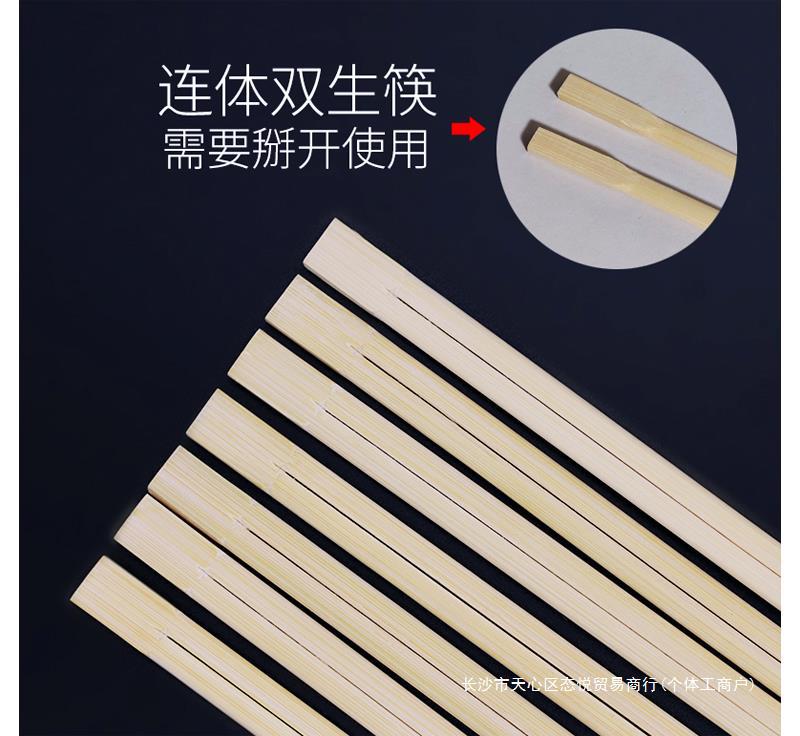一次性筷子连体双生筷竹扁筷加长加粗红色酒席家用餐具商用饭店筷