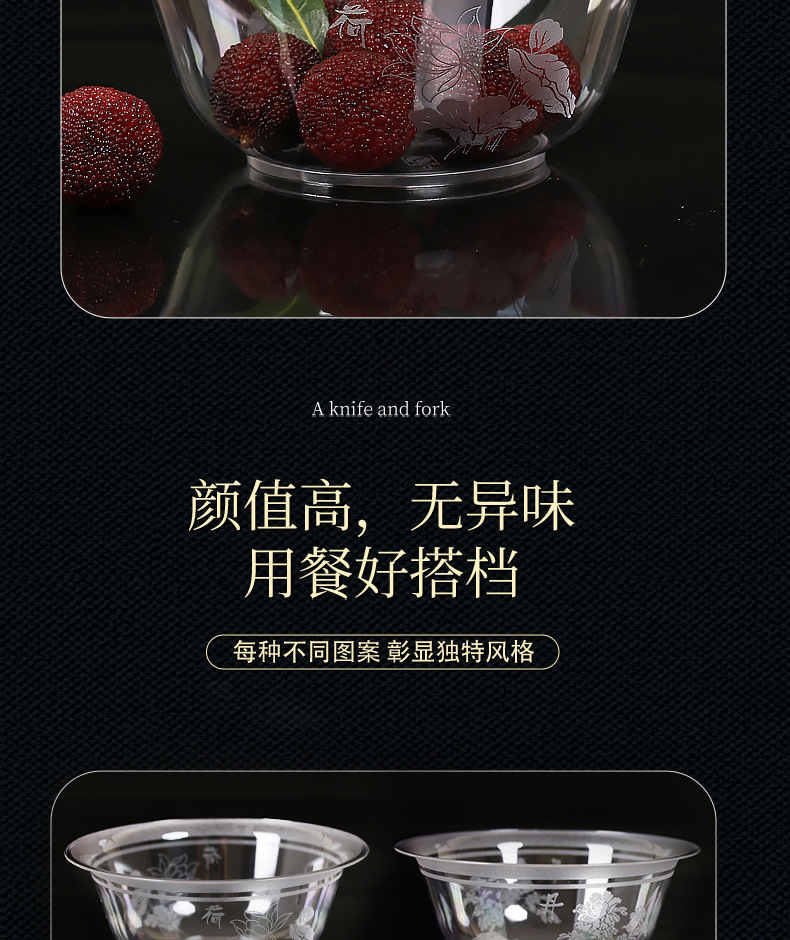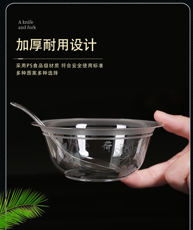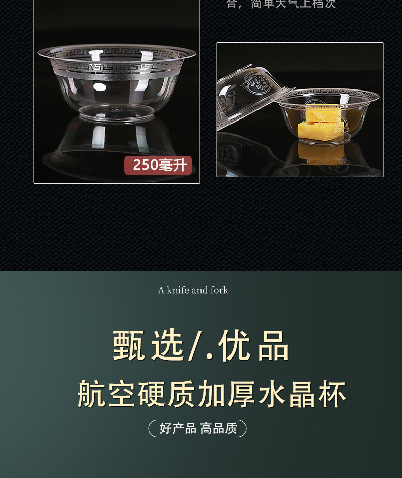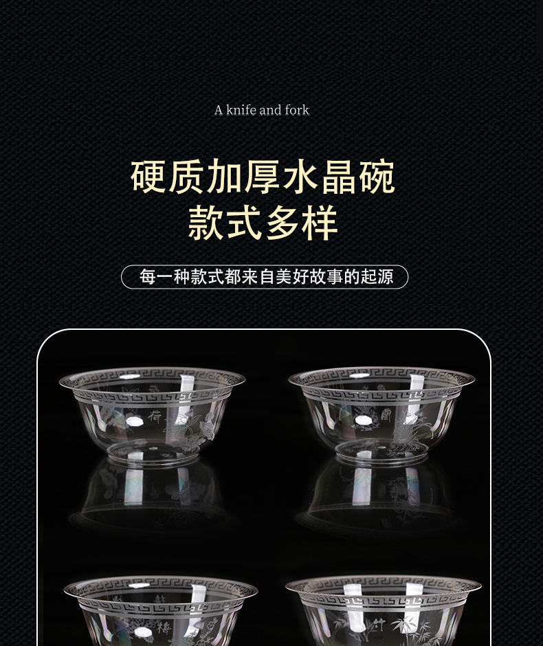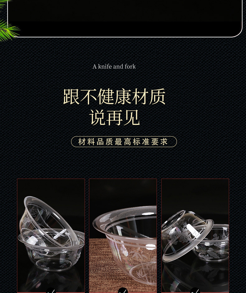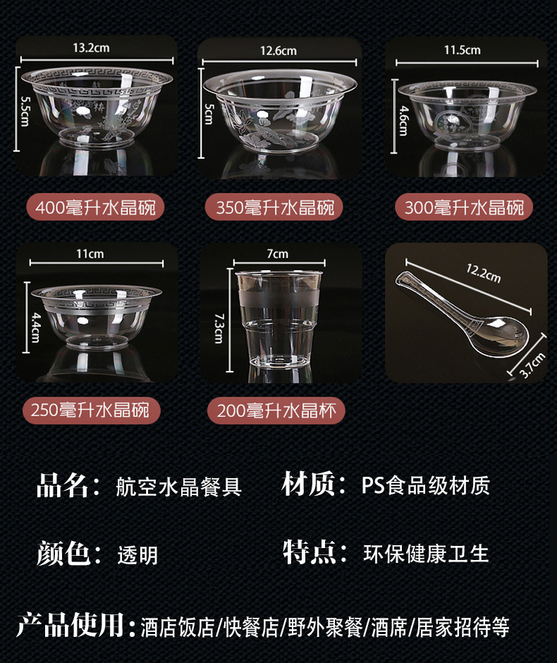 一次性碗筷航空水晶材质碗加厚透明硬质塑料碗餐具家用酒席烧烤碗