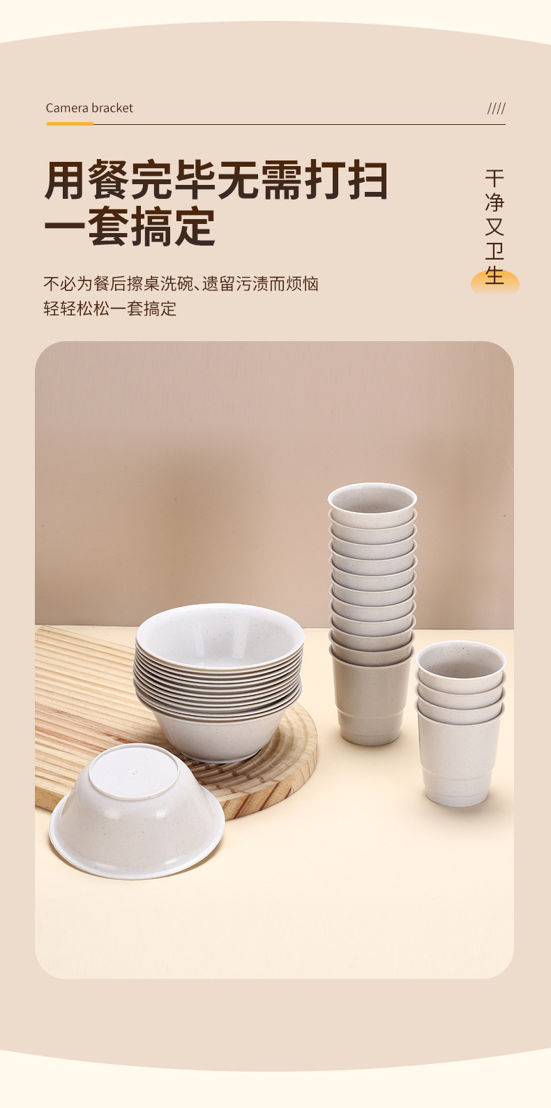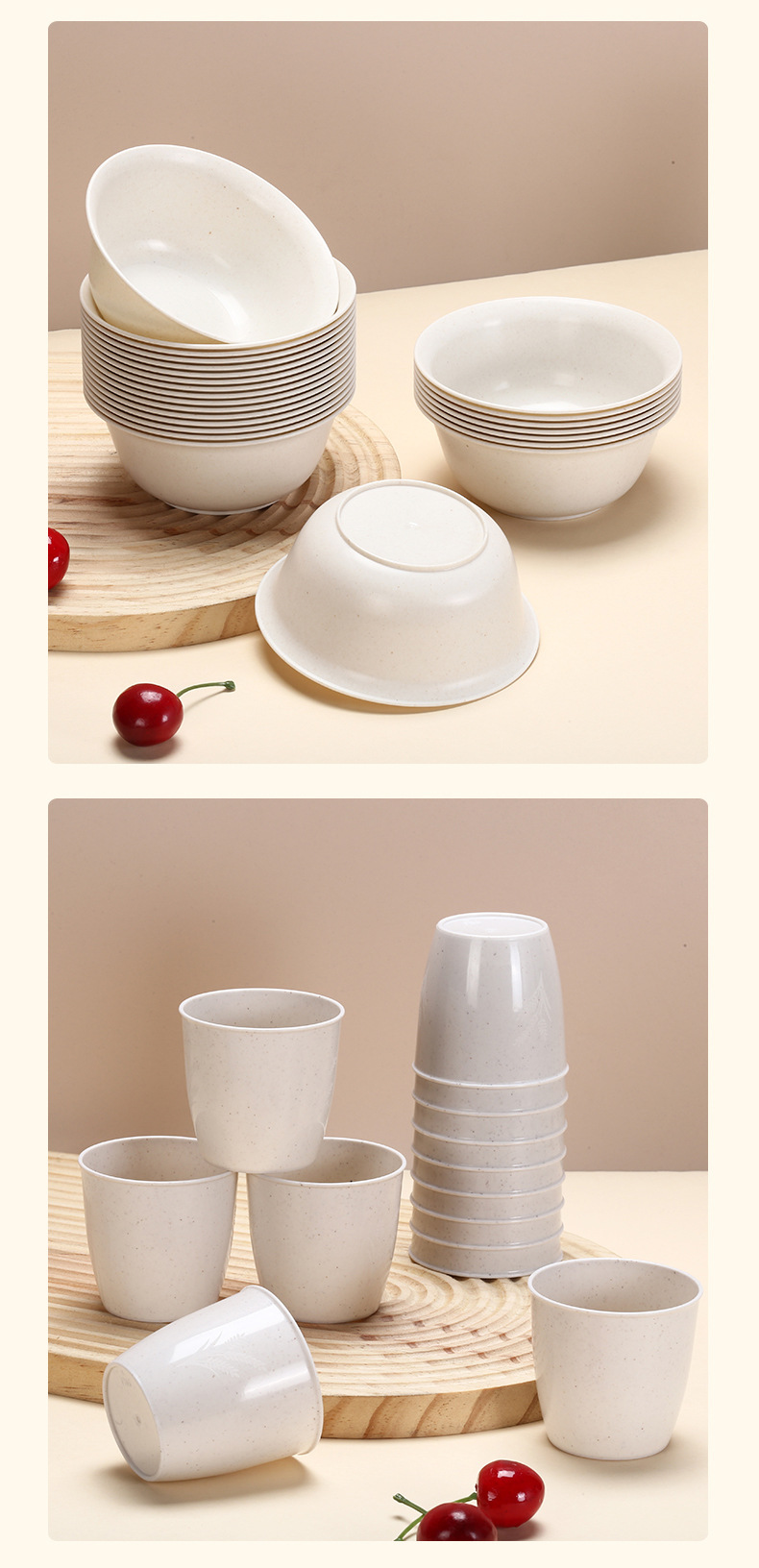 一次性碗杯套装加厚稻壳麦穗袋装吃饭碗杯子饭店酒席家用请客餐具